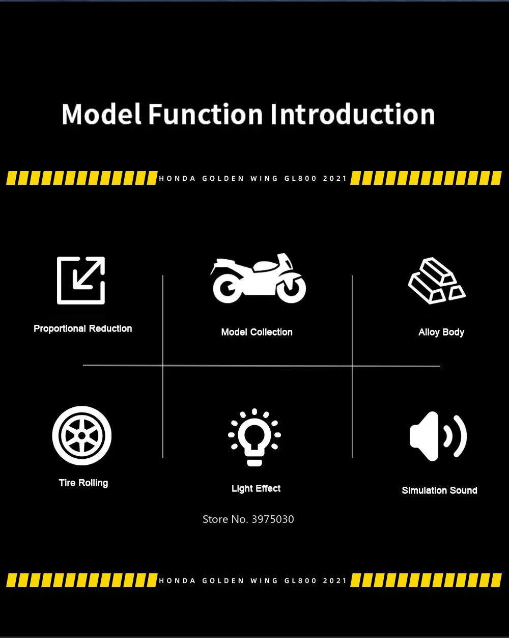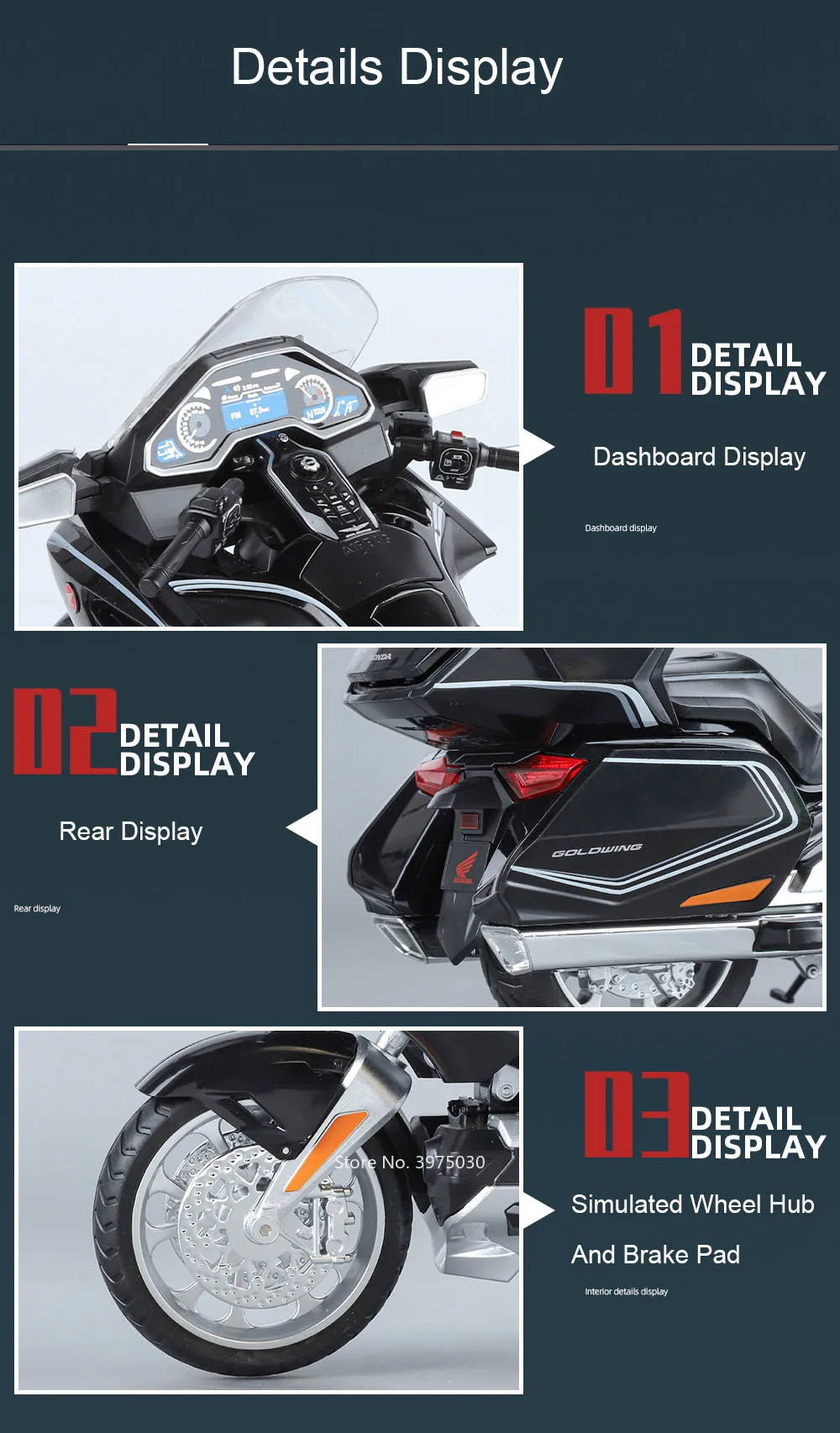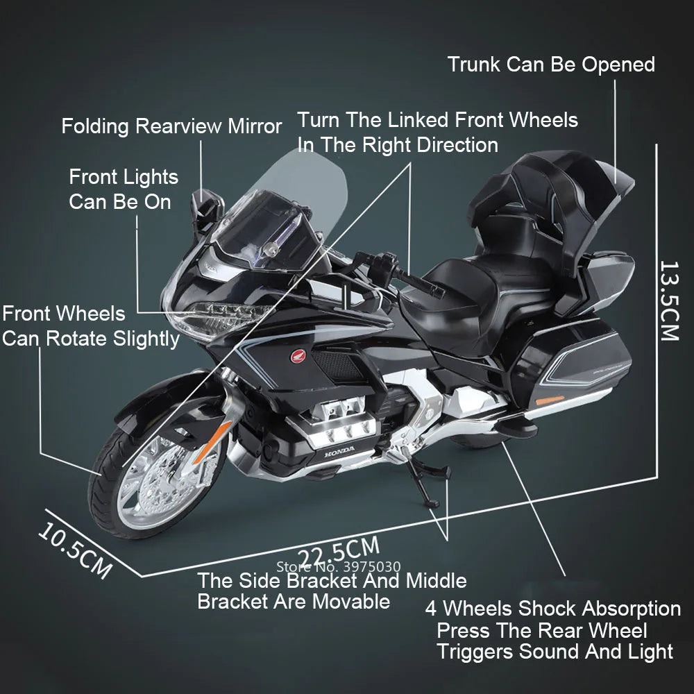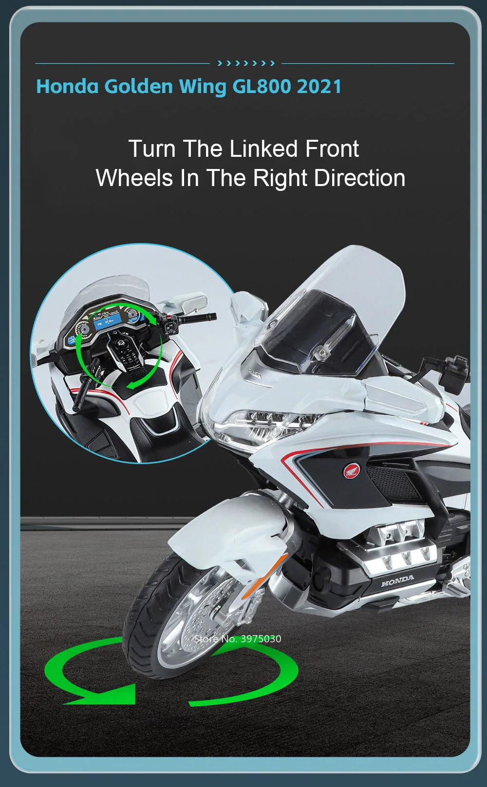 Découvrez ce modèle réduit haute simulation qui capture l'esprit authentique de la légendaire Honda Gold Wing GL800 2021. Conçu pour les collectionneurs passionnés et les amateurs exigeants, ce bijou miniature conjugue réalisme, ingénierie de précision et fonctionnalités innovantes pour offrir une expérience unique.