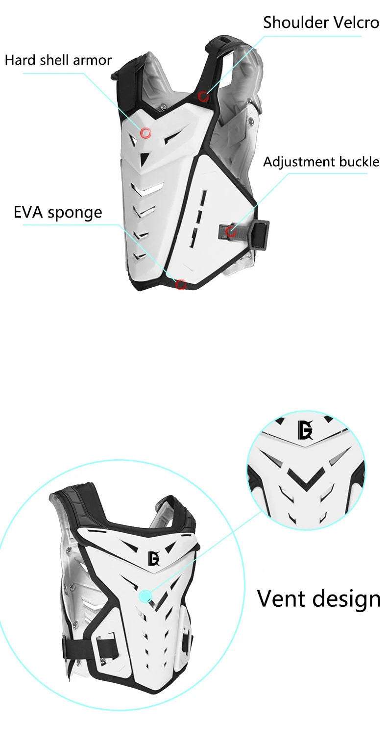 • Facile à enfiler et à ajuster : adaptez la position du blouson à votre morphologie grâce à la sangle et à la boucle réglable, vous assurant ainsi une protection optimale de la poitrine et du dos.