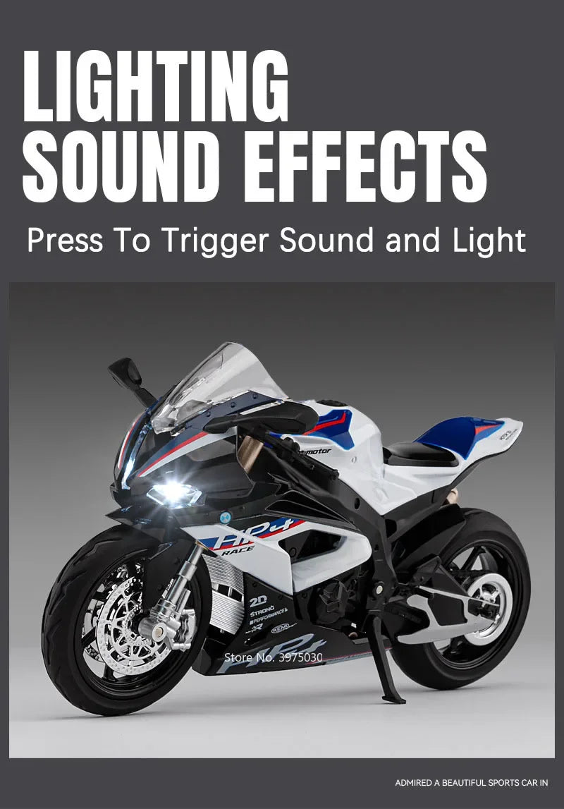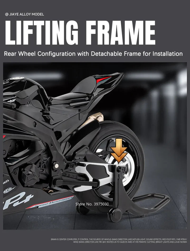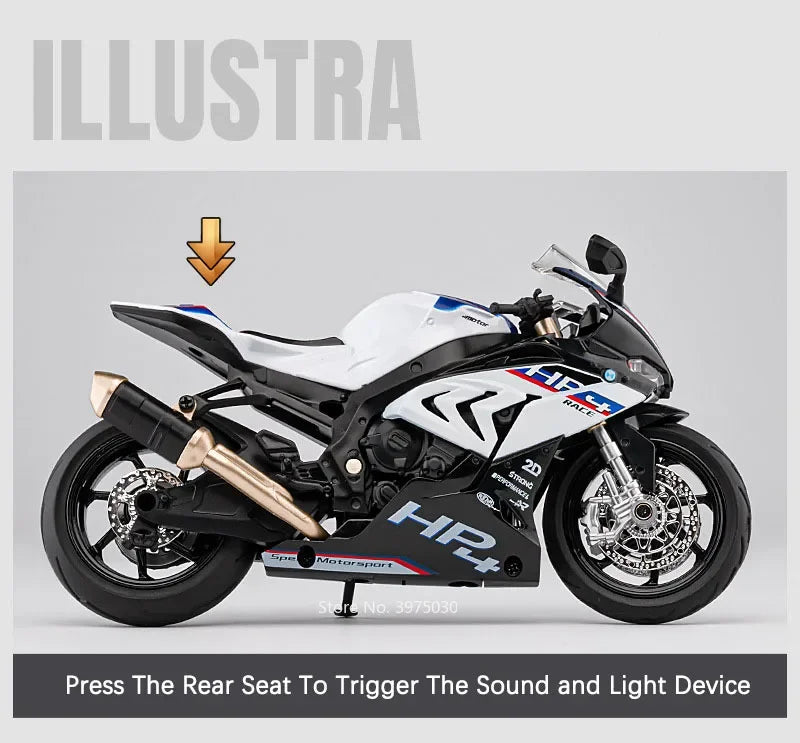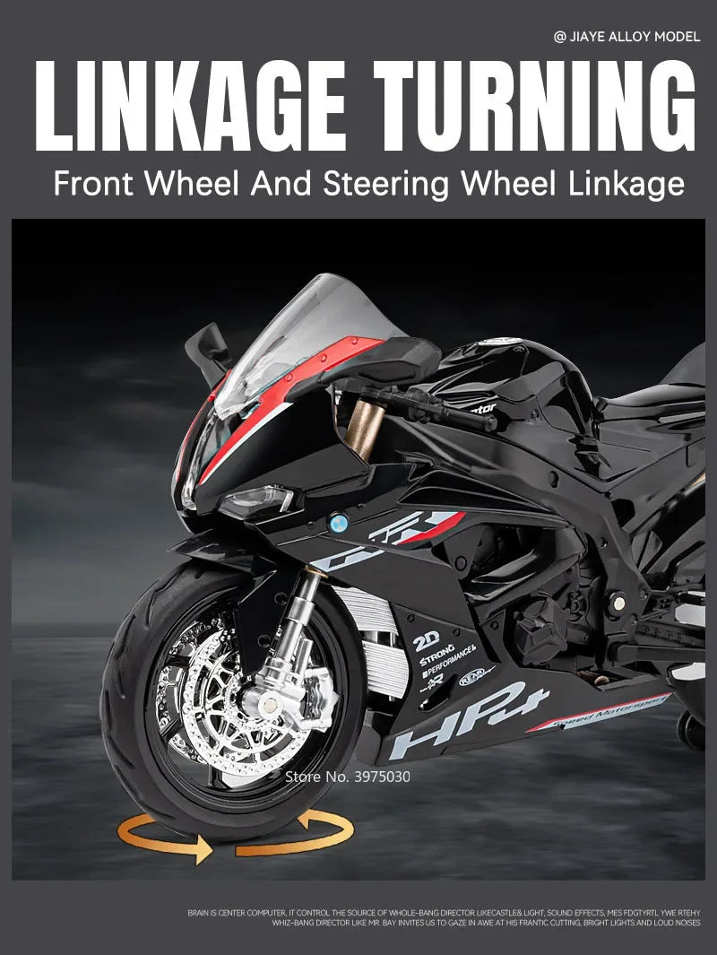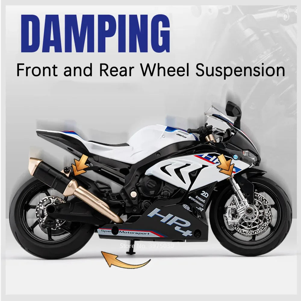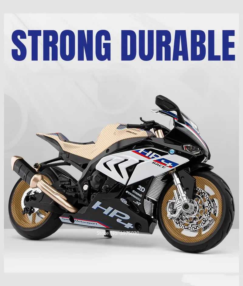 Découvrez le modèle de moto HP4 à l'échelle 1:12, une pièce de collection signée MAKEDA qui ravira autant les passionnés de modèles réduits que ceux à la recherche d’un cadeau original et raffiné. Conçue pour impressionner par ses détails et ses fonctionnalités innovantes, cette moto miniature allie esthétique, robustesse et mécanismes interactifs pour offrir une expérience ludique et réaliste.