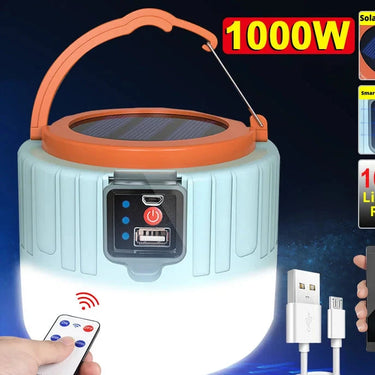 Offrez-vous une source de lumière fiable et écologique avec la lampe LED solaire 1000W. Conçue pour les amateurs de plein air, cette lanterne portable assure un éclairage puissant et longue durée, idéal pour le camping, les randonnées, les urgences ou encore les soirées en extérieur. Grâce à sa recharge solaire et USB, elle s’adapte à toutes les situations, garantissant une autonomie optimale.