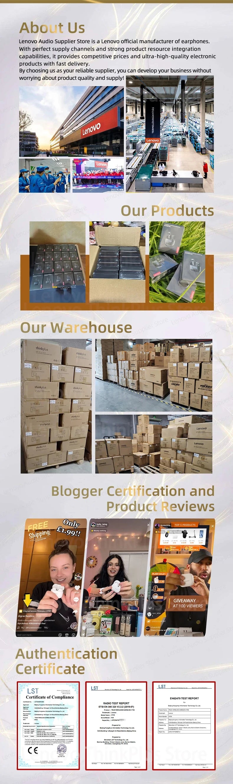 Fabriqués en Chine par la marque Lenovo, ces écouteurs TWS sont disponibles en deux coloris – Black et White. Le colis comprend deux écouteurs, un étui de recharge, un câble USB et un manuel d’utilisation pour vous guider dès le déballage. Adaptés à une utilisation pour le sport, le bureau ou les loisirs, ils sont le compagnon idéal pour profiter d’une qualité sonore exceptionnelle en toutes circonstances.