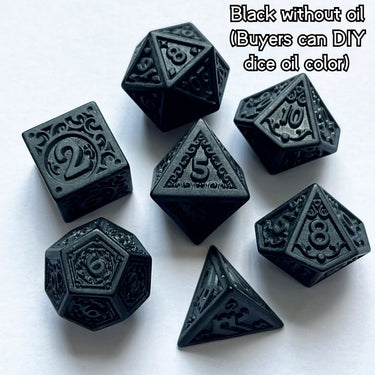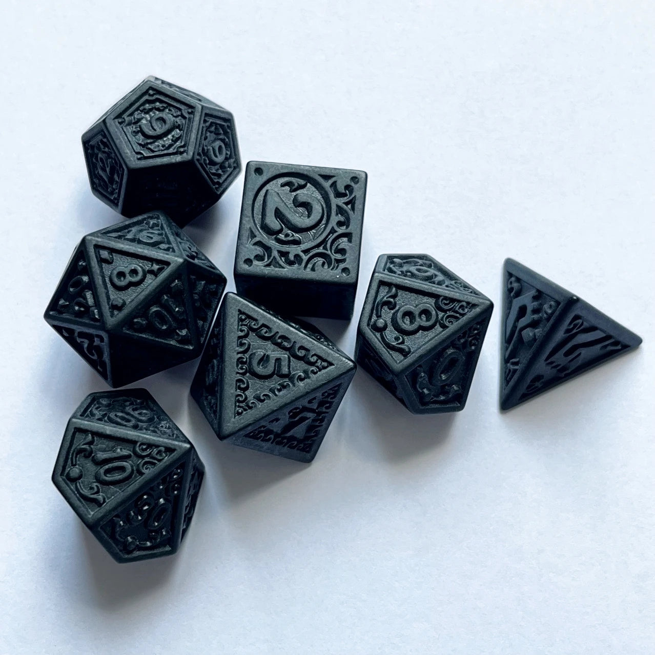 Set de 7 dés polyédriques vintage - Motif rétro sculpté