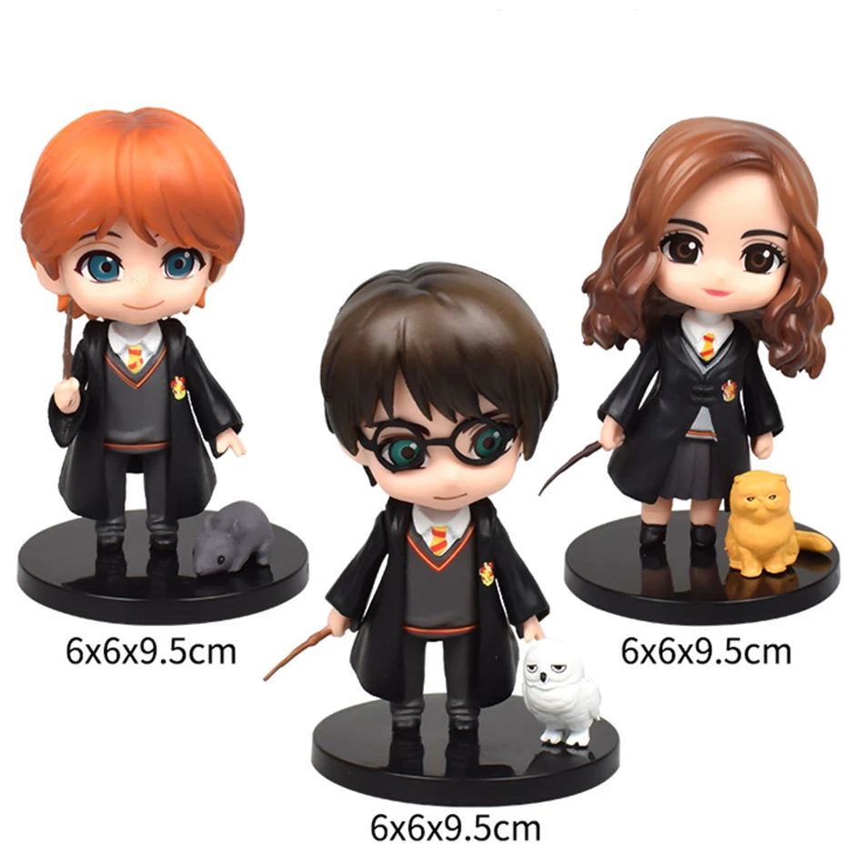 Ensemble de 3 Figurines Harry Potter - Modèle PVC Hermione Granger, Ron Weasley et Hedwig