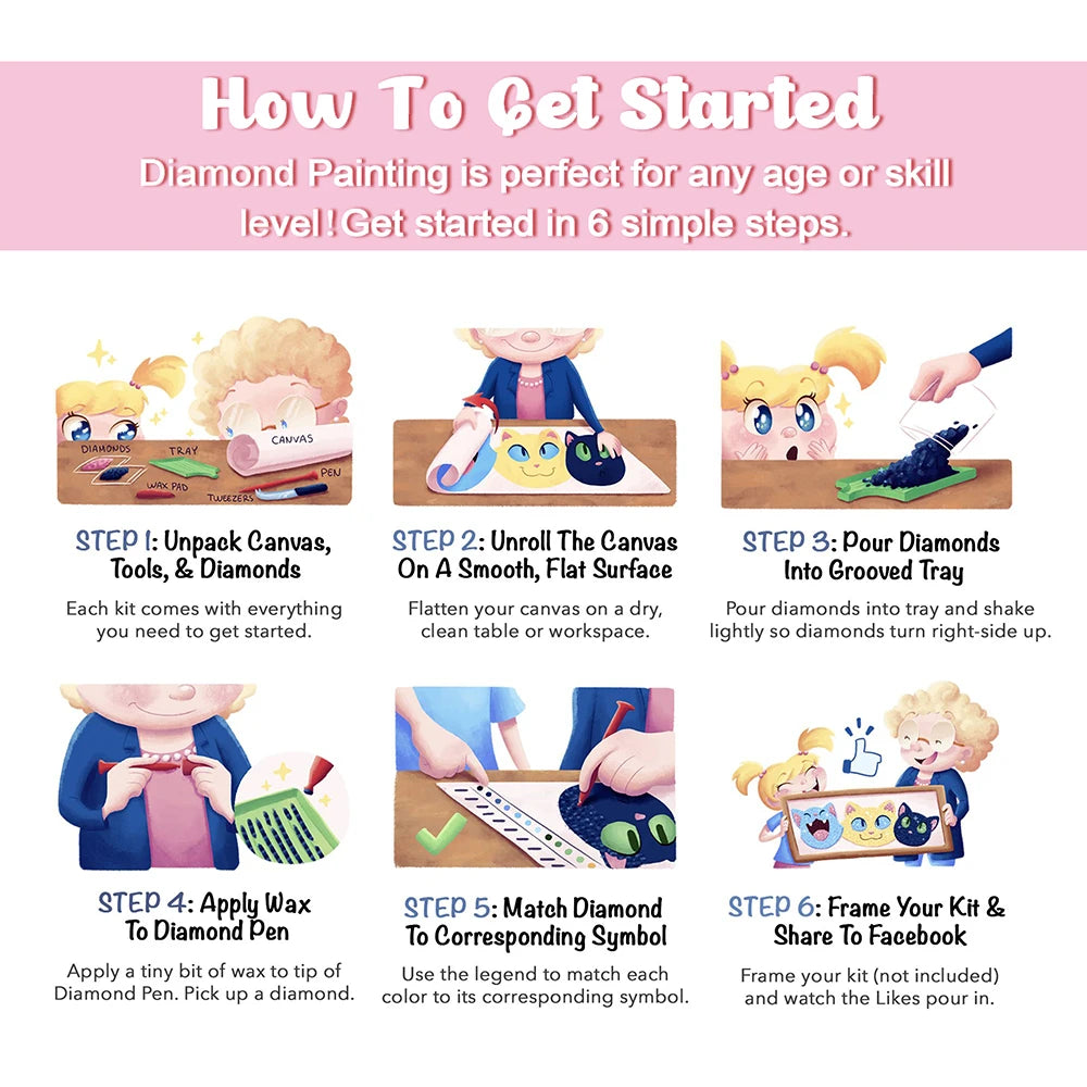 • Détails minutieux grâce à une impression en très haute résolution et un adhésif pour toile ultra-résistant garantissant que les diamants restent en place à vie