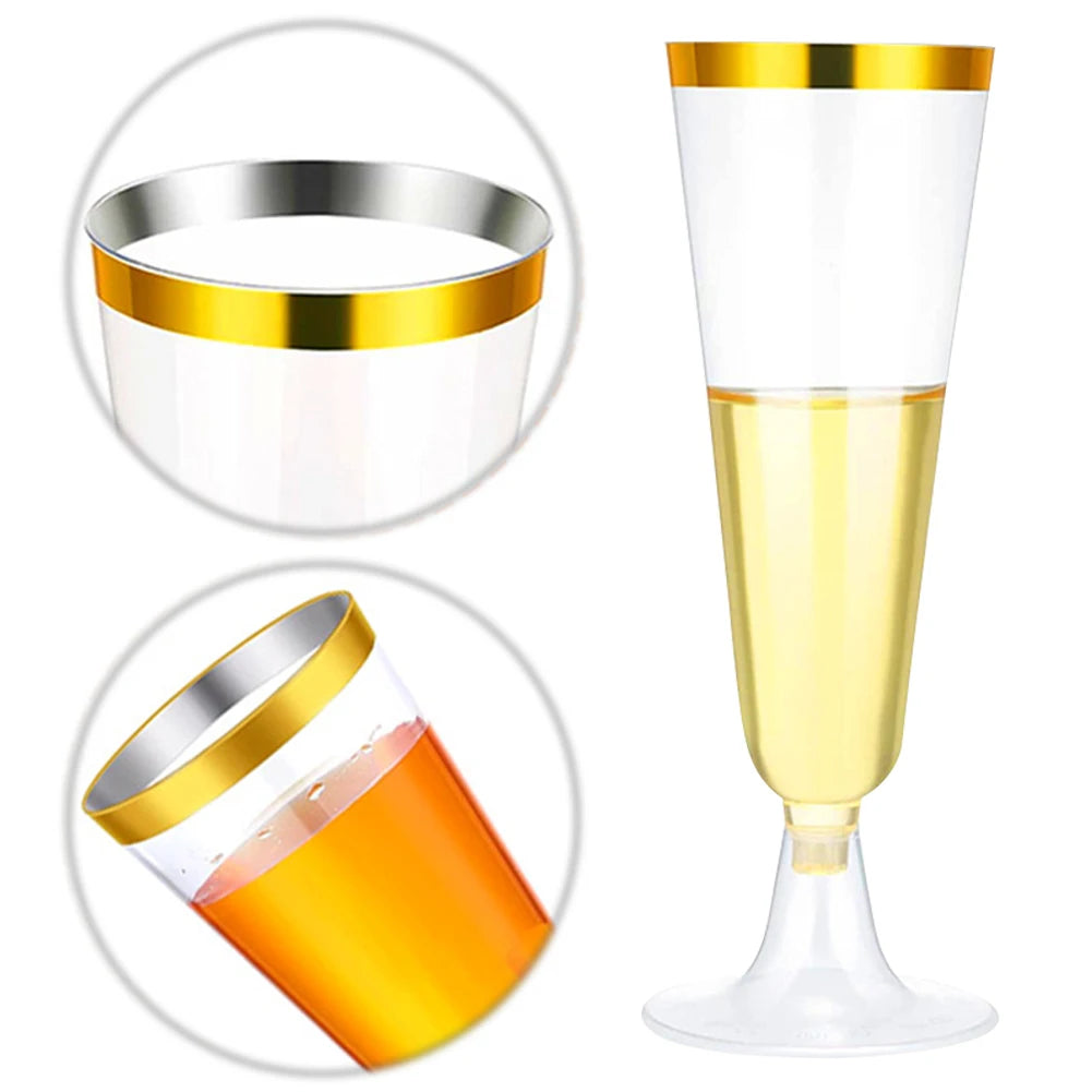 Fabriquées par Shunmaii en Chine continentale, ces flûtes à Champagne jetables respectent des standards élevés en matière de qualité et de sécurité. Le coffret de 25 pièces est idéal pour animer vos festivités tout en alliant praticité et élégance, et chaque détail – du choix du matériau à la finition dorée – est pensé pour offrir une expérience de consommation premium.