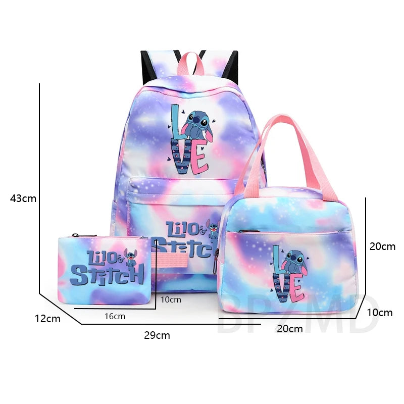 Découvrez cet ensemble exclusif alliant style moderne et praticité, spécialement conçu pour les étudiantes et les adolescentes actives. Inspiré de l'univers Lilo & Stitch, ce set revisite le sac à dos classique avec une touche unique et tendance, idéale pour l’école et les activités quotidiennes.