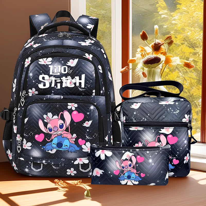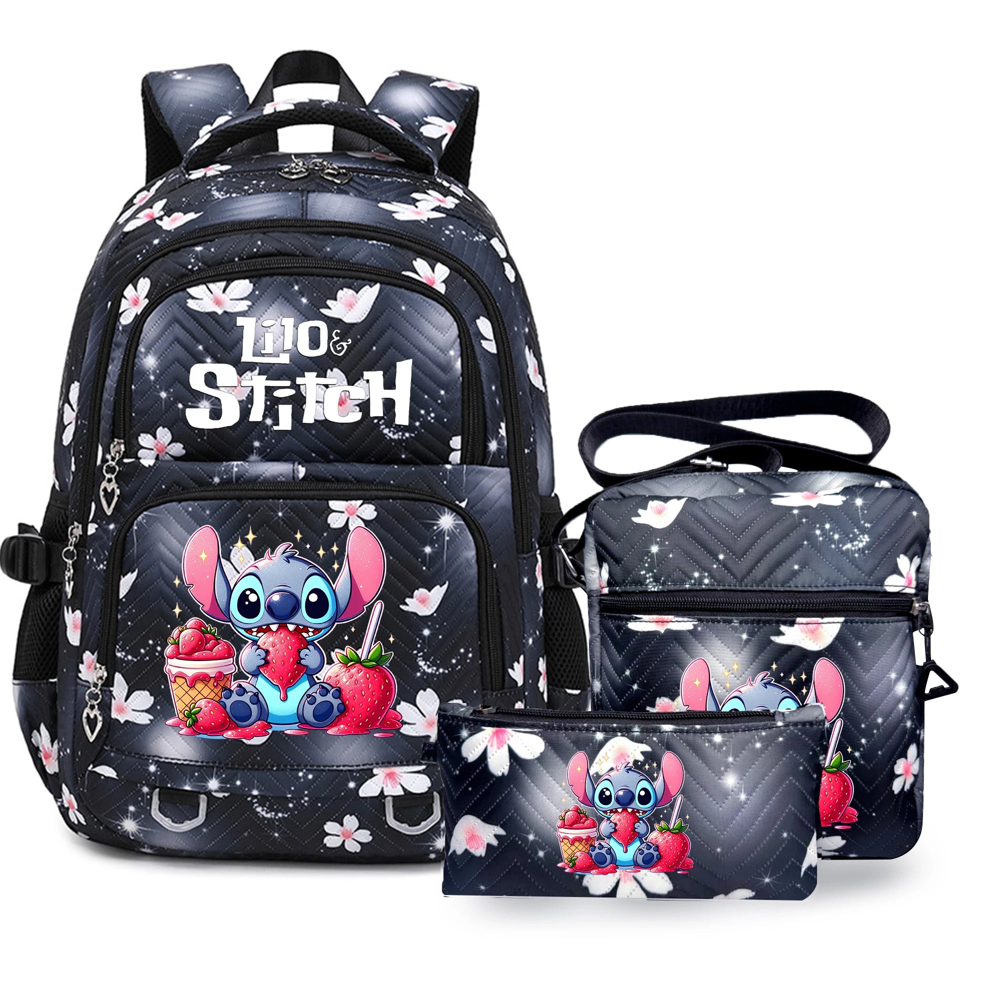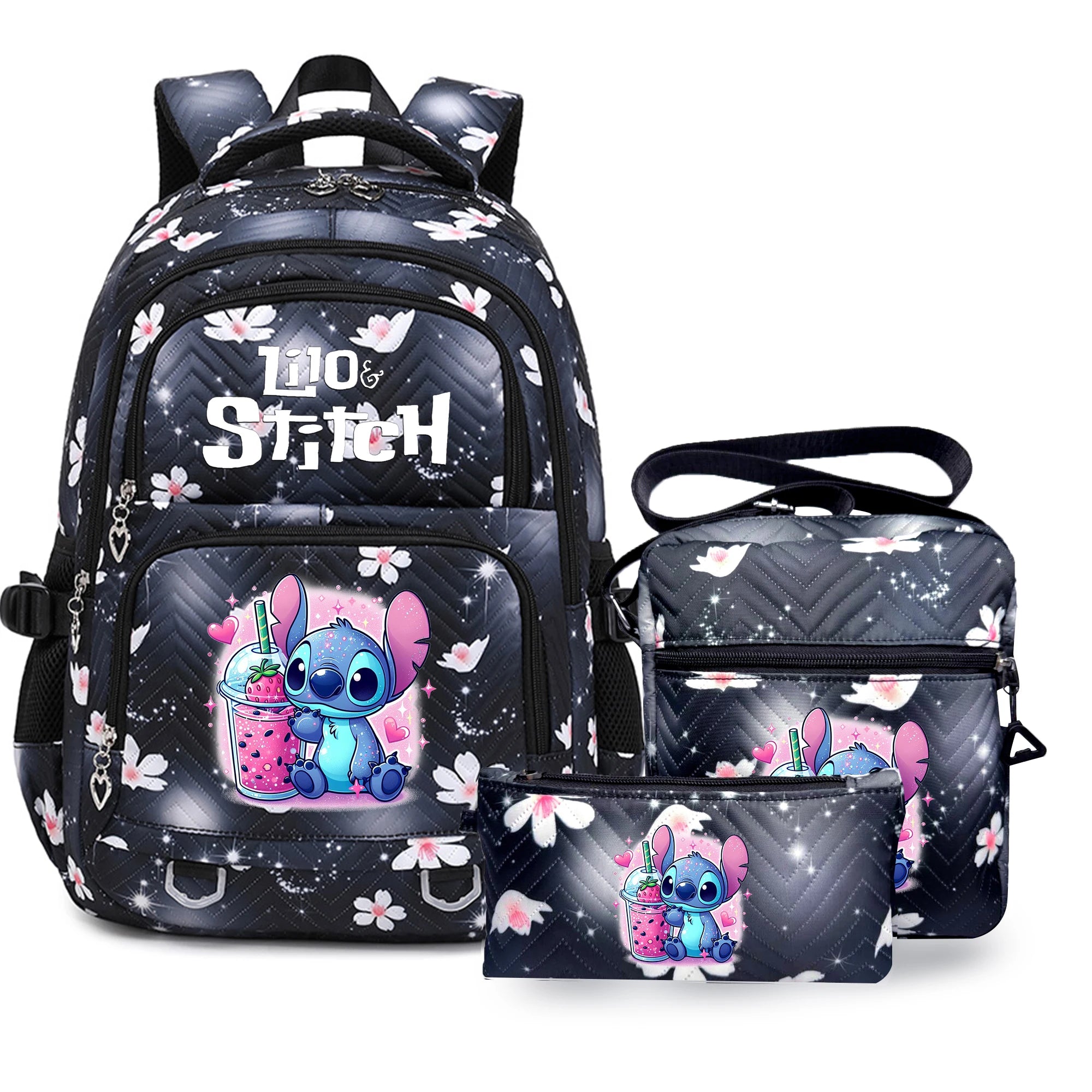 Le modèle Lilo Stitch se décline dans des finitions à l’effigie du personnage emblématique, alliant charme et originalité. Chaque ensemble comprend un sac à dos étanche, un cartable léger et un sac à bandoulière uni, assurant ainsi praticité et style pour toutes les occasions.