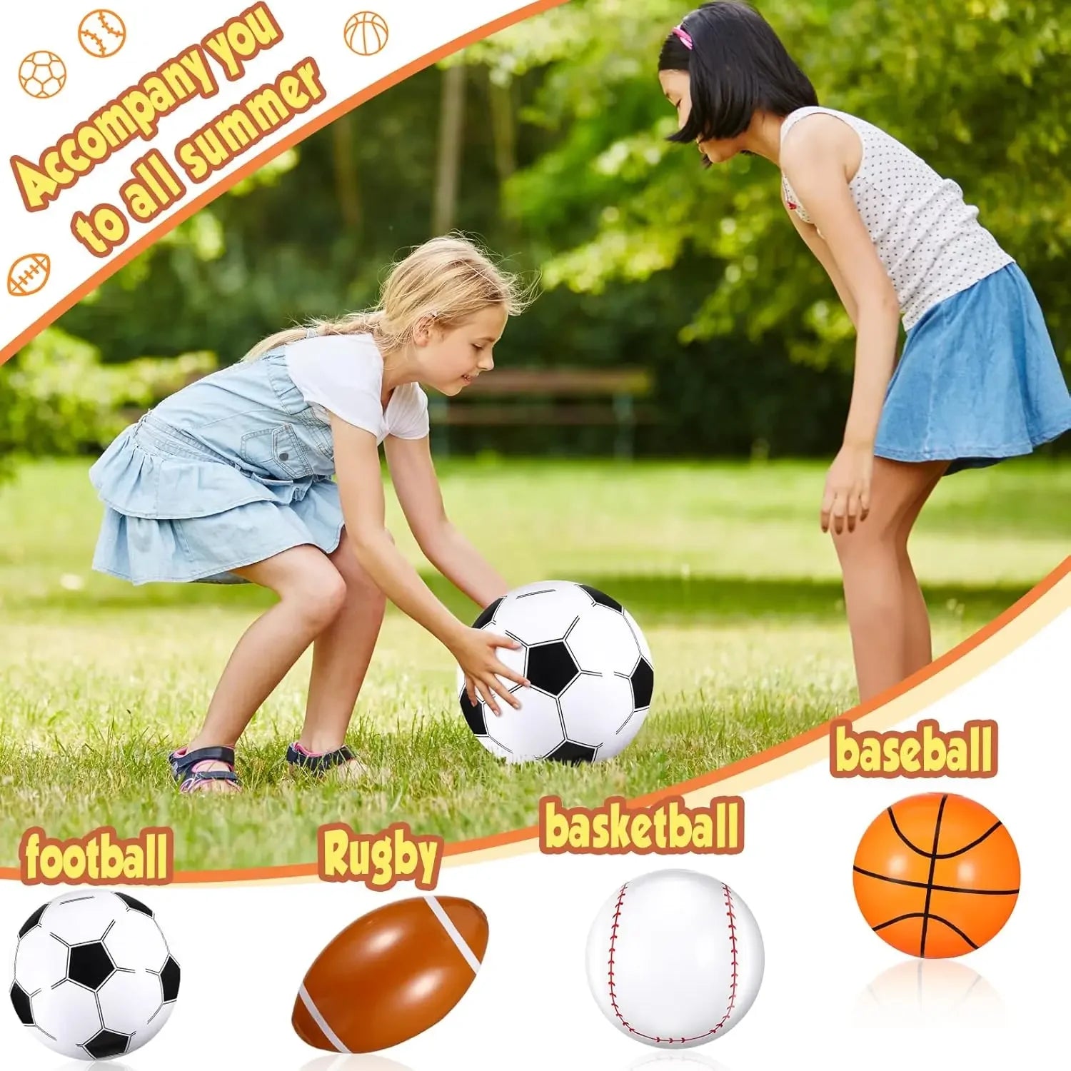 • Accessoires inclus : Set composé de trois ballons distincts (football, baseball, basket-ball) pour divers jeux, présentés dans un conditionnement pratique et facile à stocker.