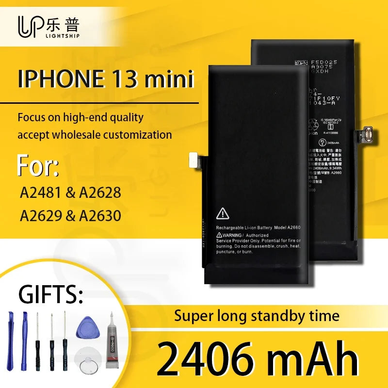 • Capacité adaptée : 1821 mAh pour iPhone 13 et 2406 mAh pour iPhone 13 mini, avec des valeurs optimisées dans la plage de 3501 mAh à 5000 mAh pour une performance accrue.