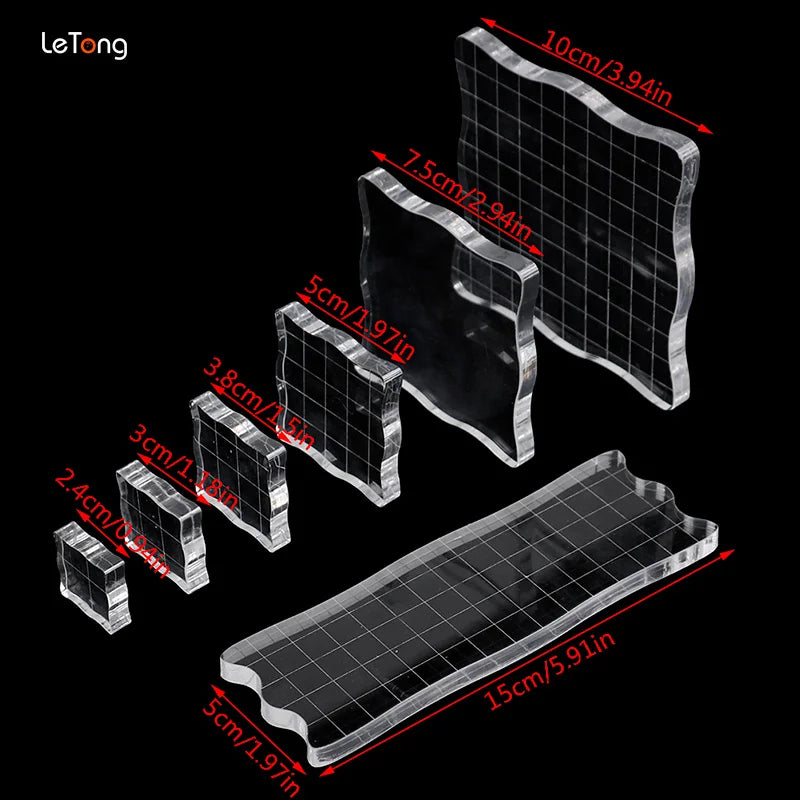 Lot de 7 Blocs de Tampons Acryliques Transparants avec Lignes de Grille
