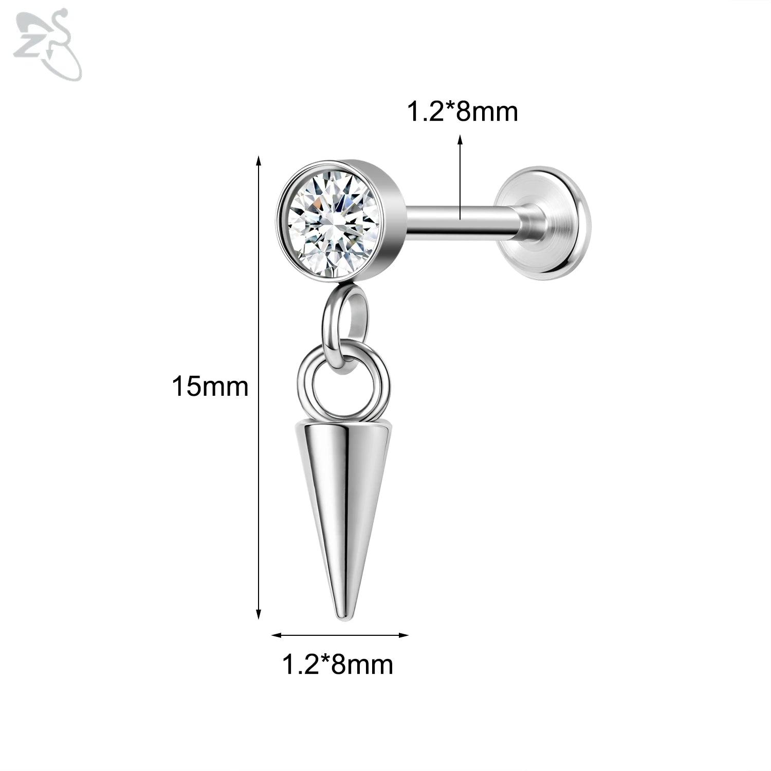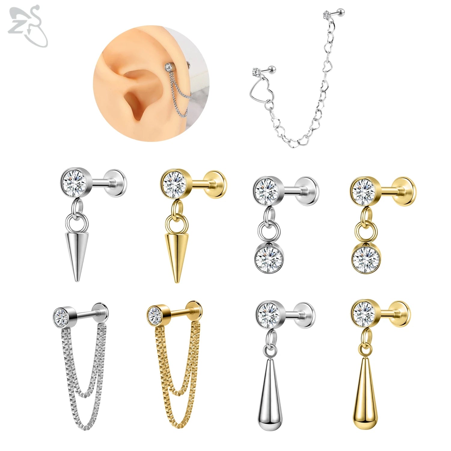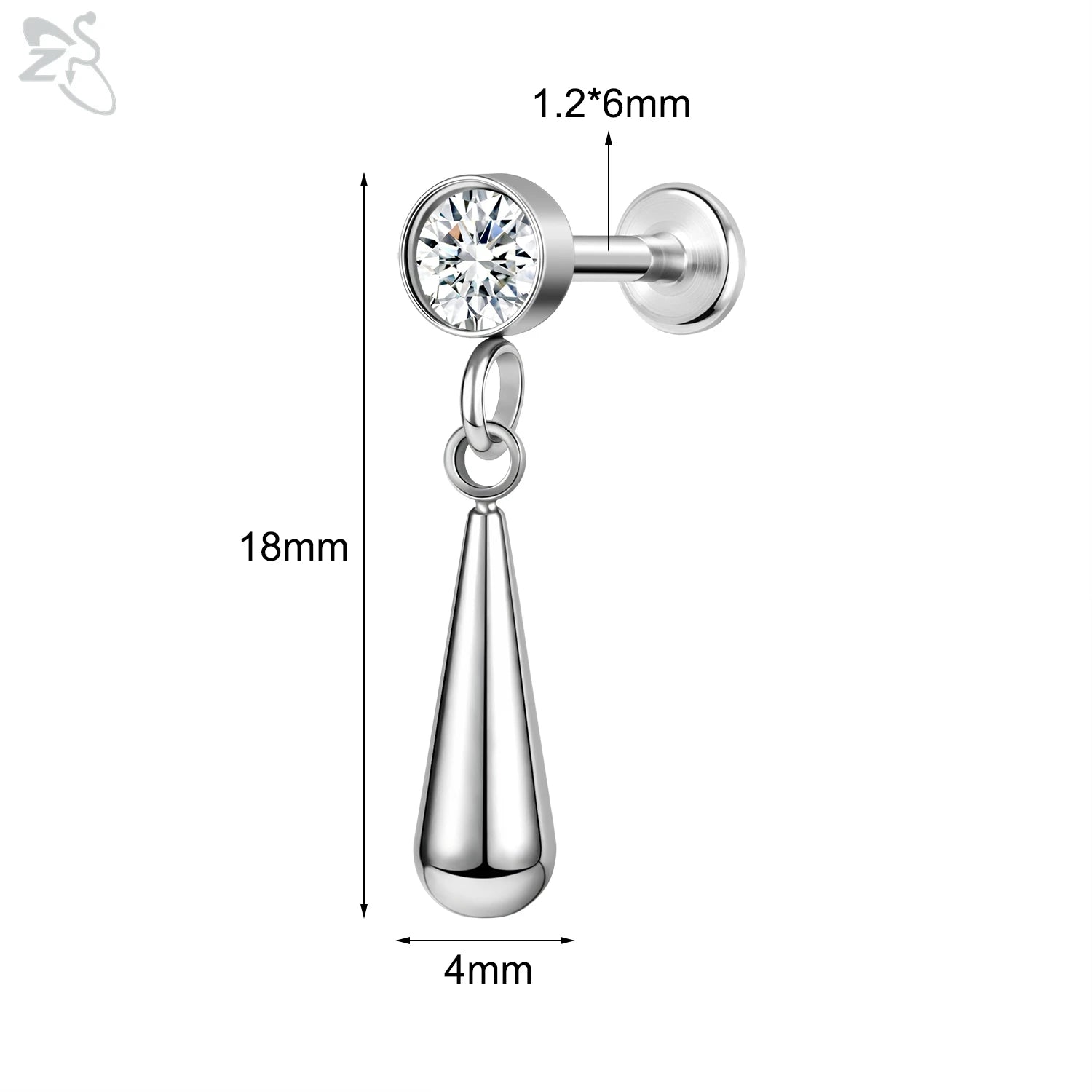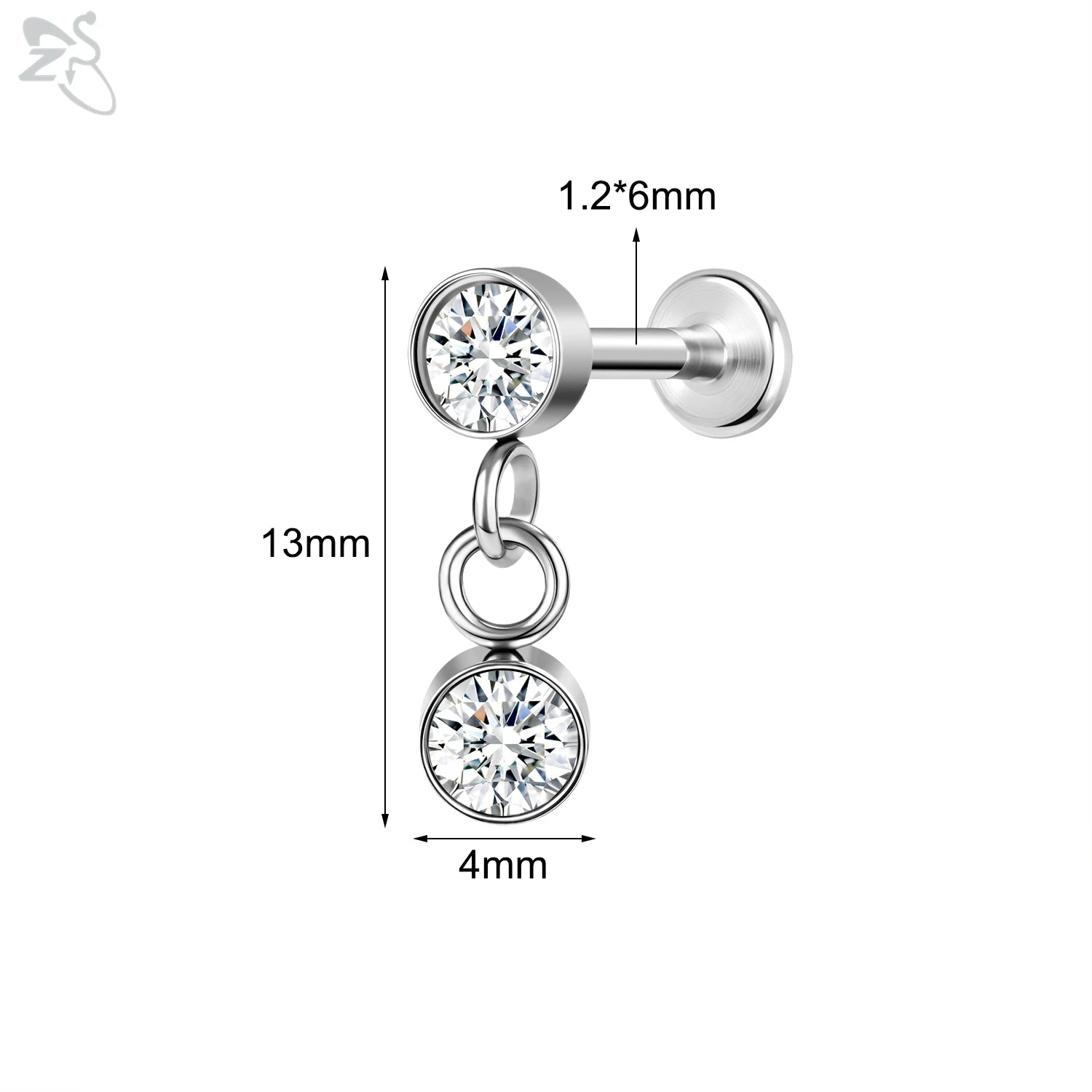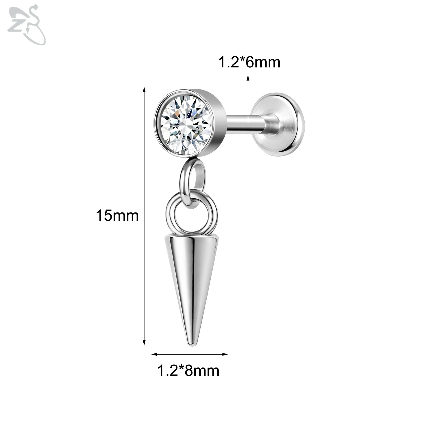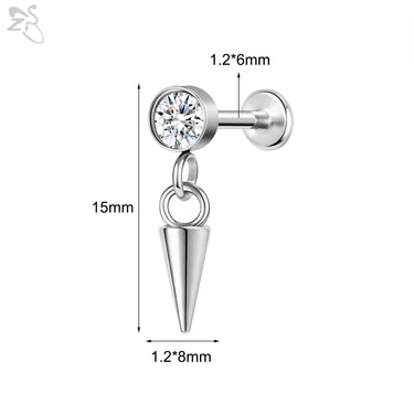 ZS-Boucles d'Oreilles en Acier Inoxydable 16G, CZ Brillant, Cartilage, Helix, Conque, 6/8mm