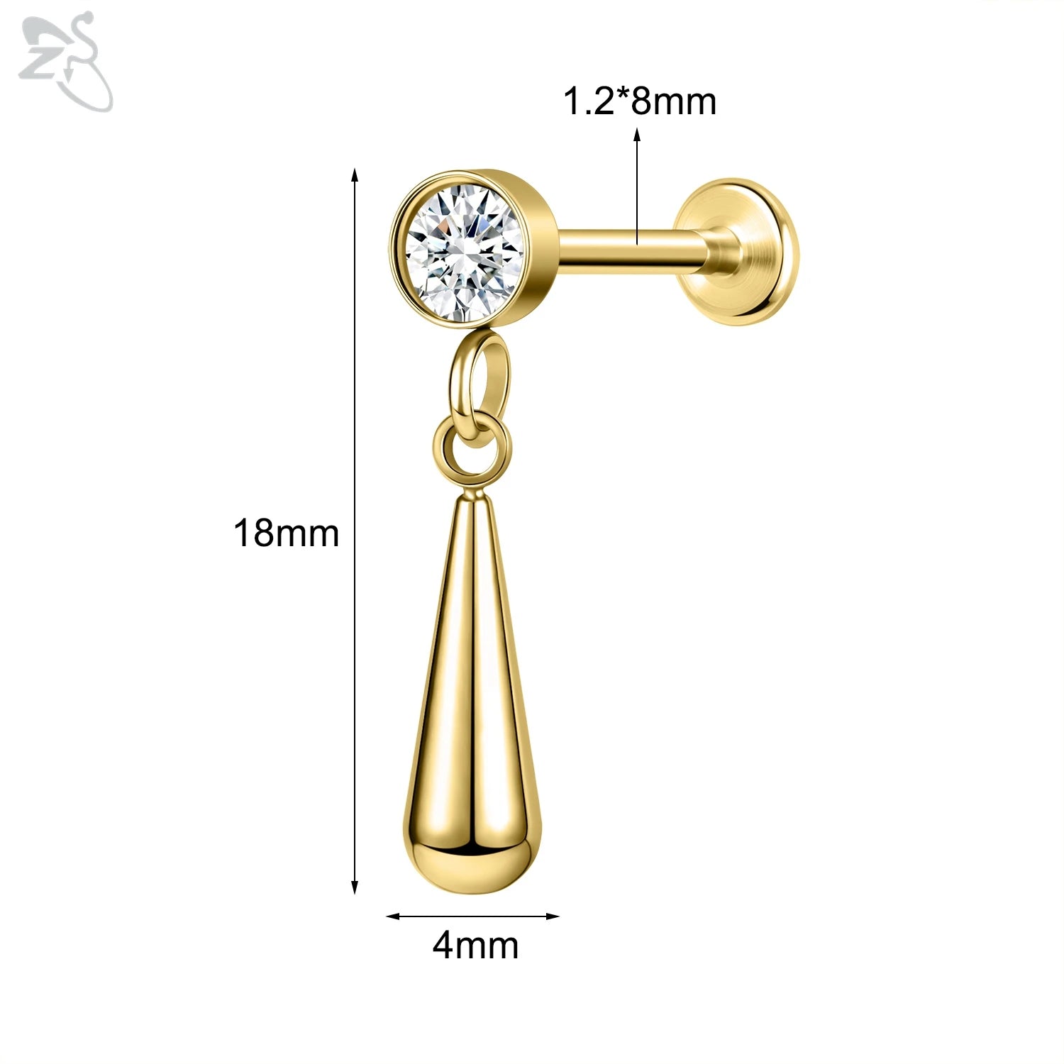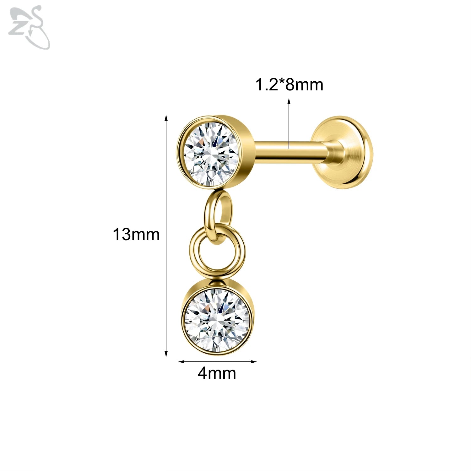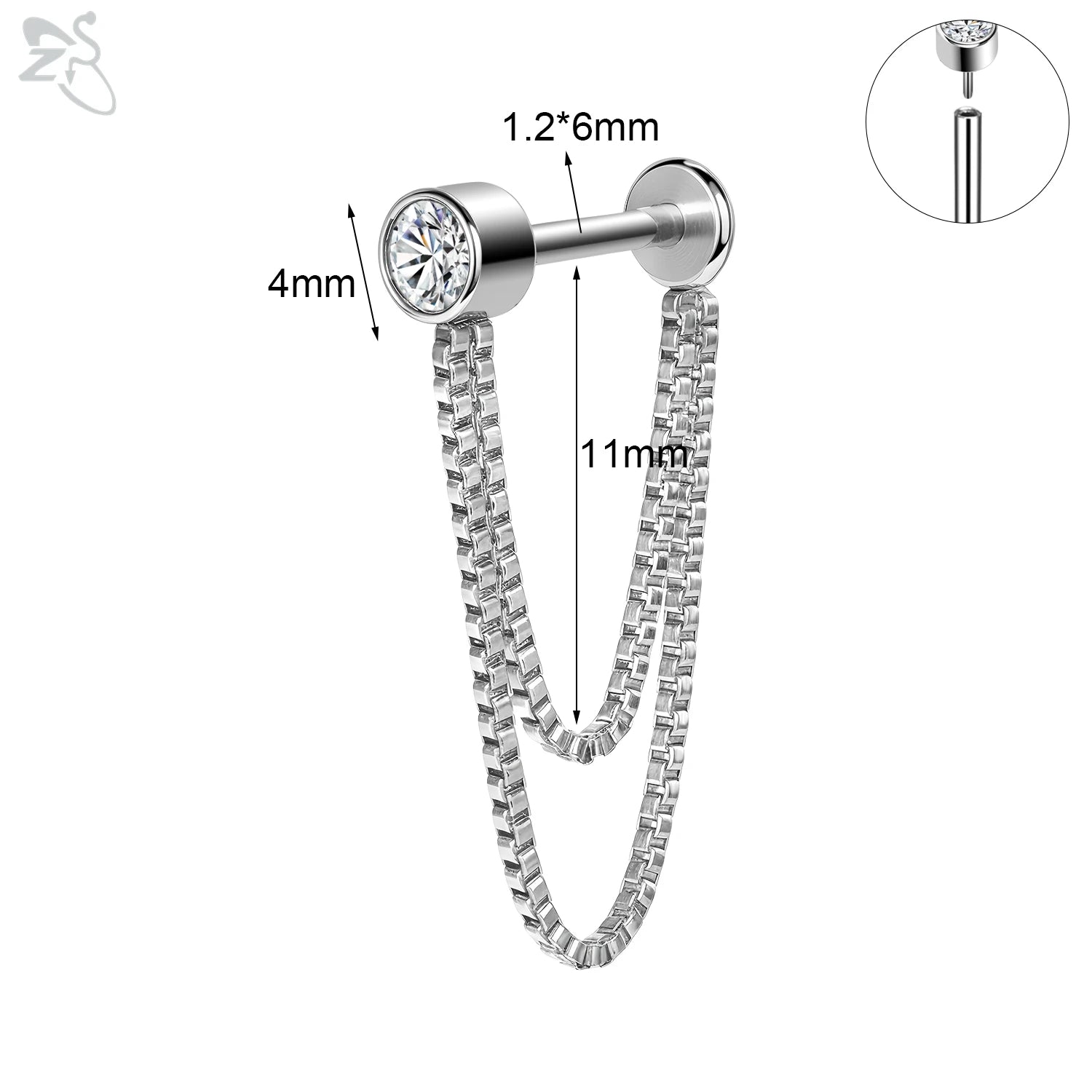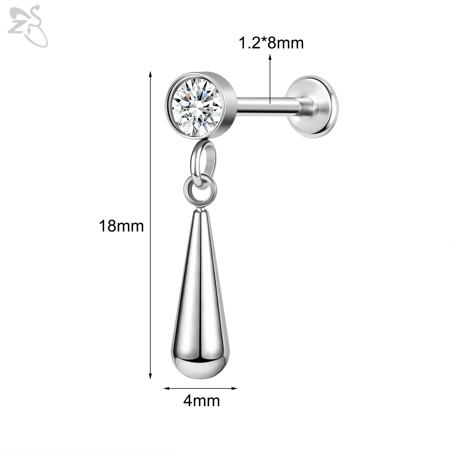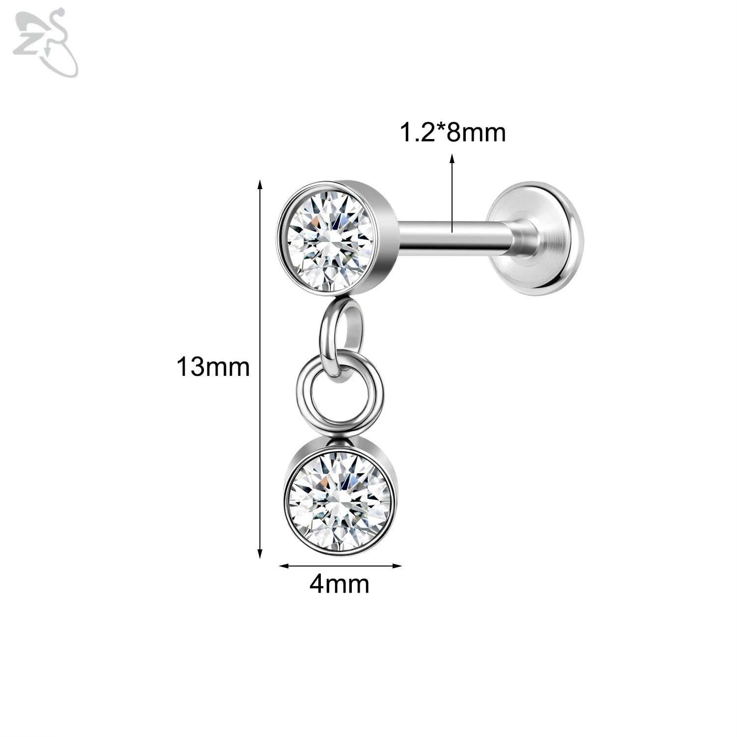 ZS-Boucles d'Oreilles en Acier Inoxydable 16G, CZ Brillant, Cartilage, Helix, Conque, 6/8mm