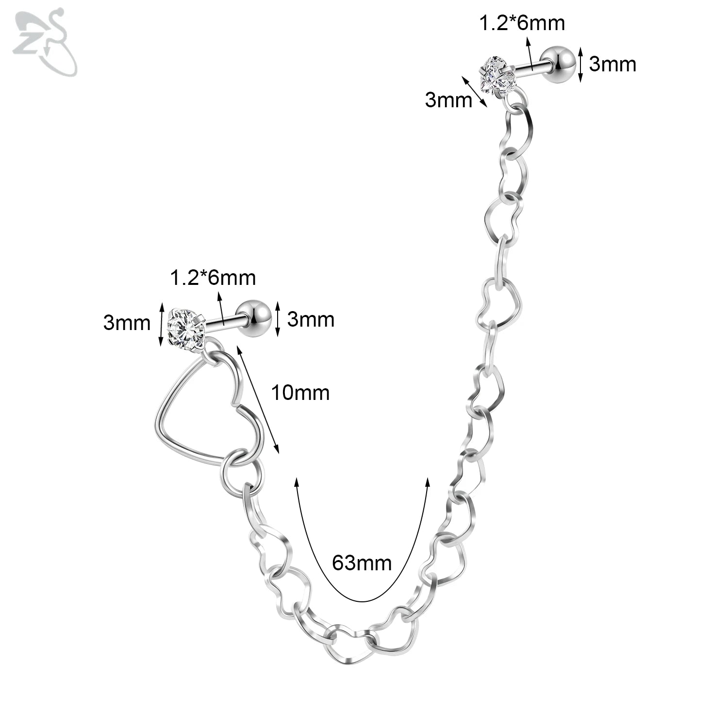 Ces boucles d'oreilles en acier inoxydable de la marque ZS sont des bijoux élégants et tendance qui ajoutent une touche de brillance à votre style. Avec des cristaux de zircone cubique clairs, ces boucles d'oreilles sont parfaites pour le cartilage, l'hélix, la conque et plus encore.