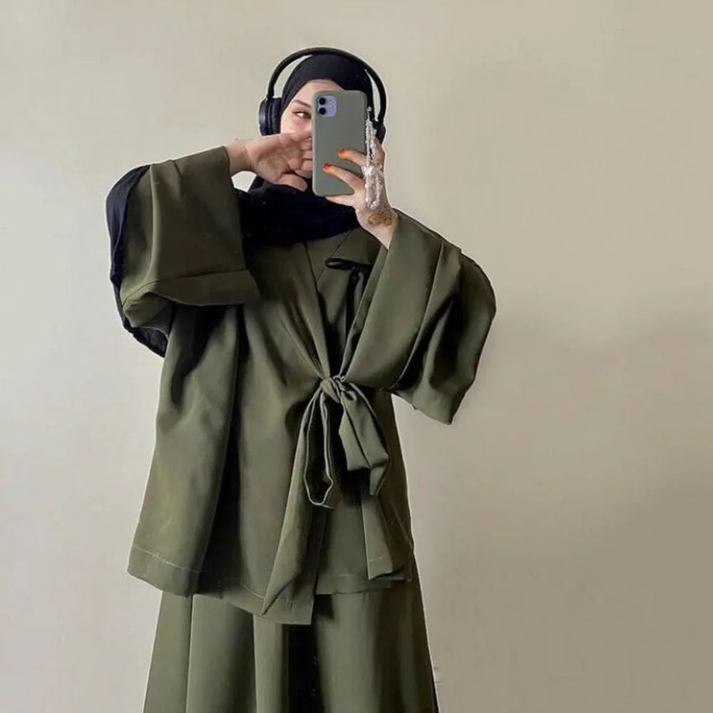 Découvrez l'essence du raffinement et du confort avec cet ensemble deux pièces spécialement conçu pour la femme musulmane. Conçu pour les occasions festives, décontractées ou religieuses telles que le Ramadan, ce vêtement combine habilement modernité et modestie pour offrir une allure chic et intemporelle.