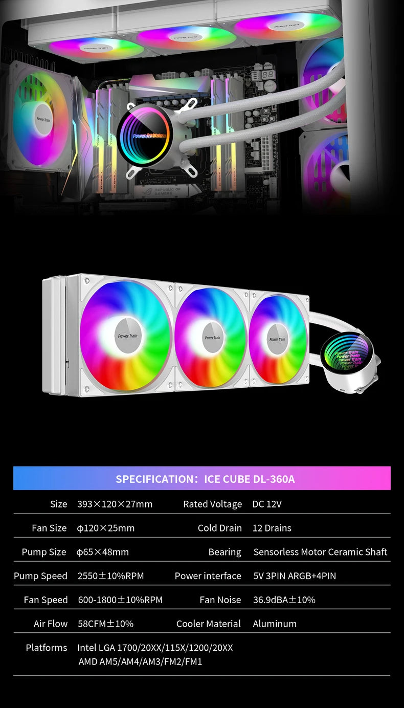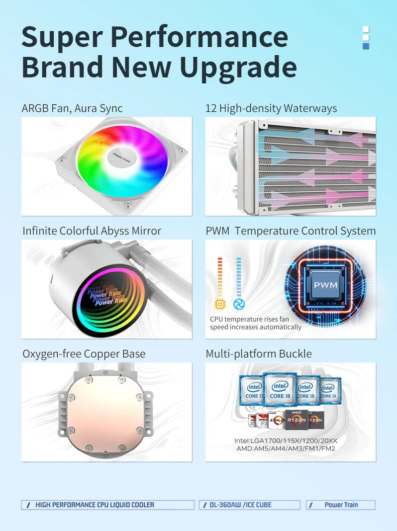 • Marque et origine : POWER TRAIN, fabriqué en Chine et conçu pour répondre aux exigences des systèmes de refroidissement tout-en-un.