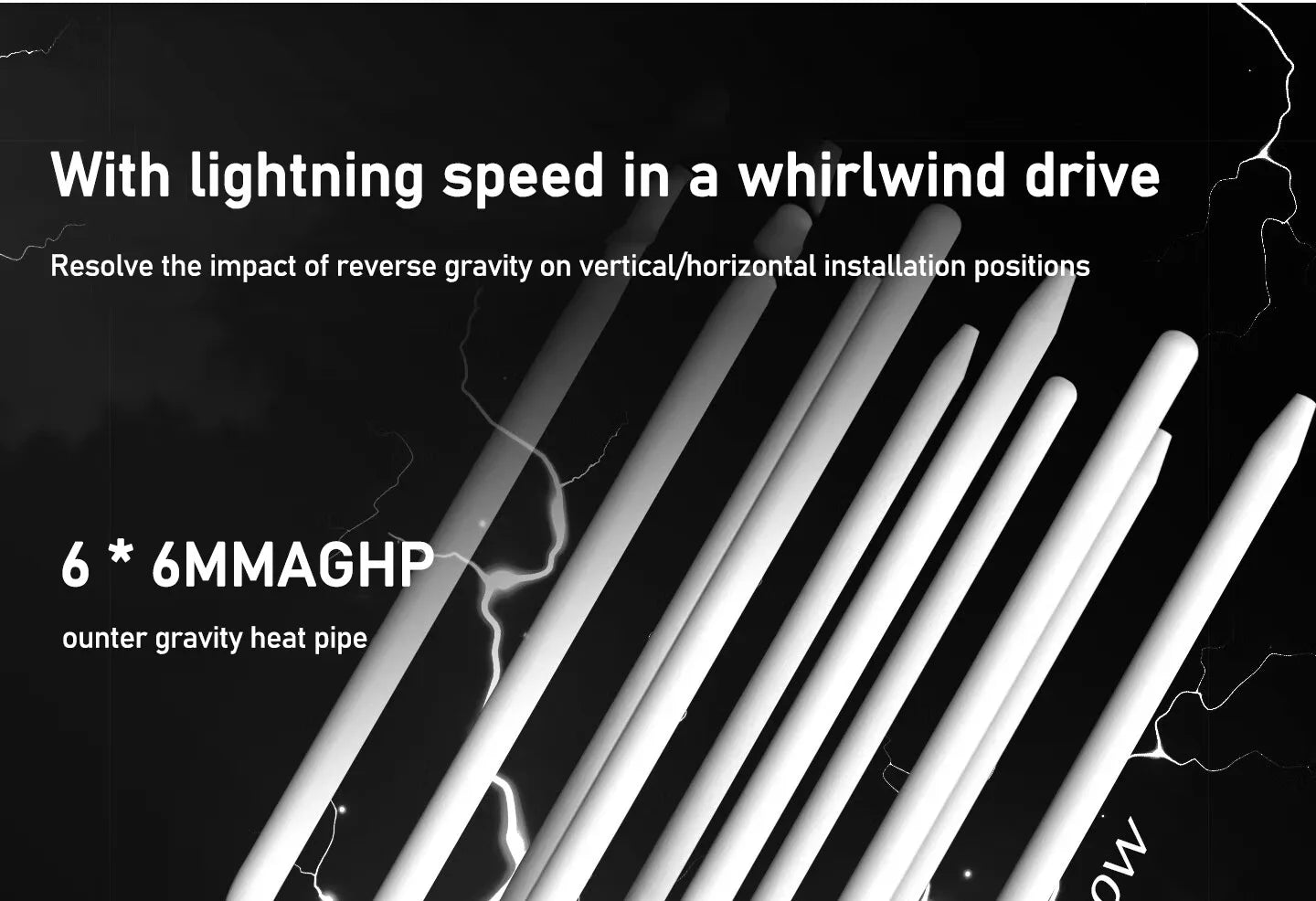• Performance de refroidissement supérieure grâce à la combinaison de 6 caloducs et 9 ailettes