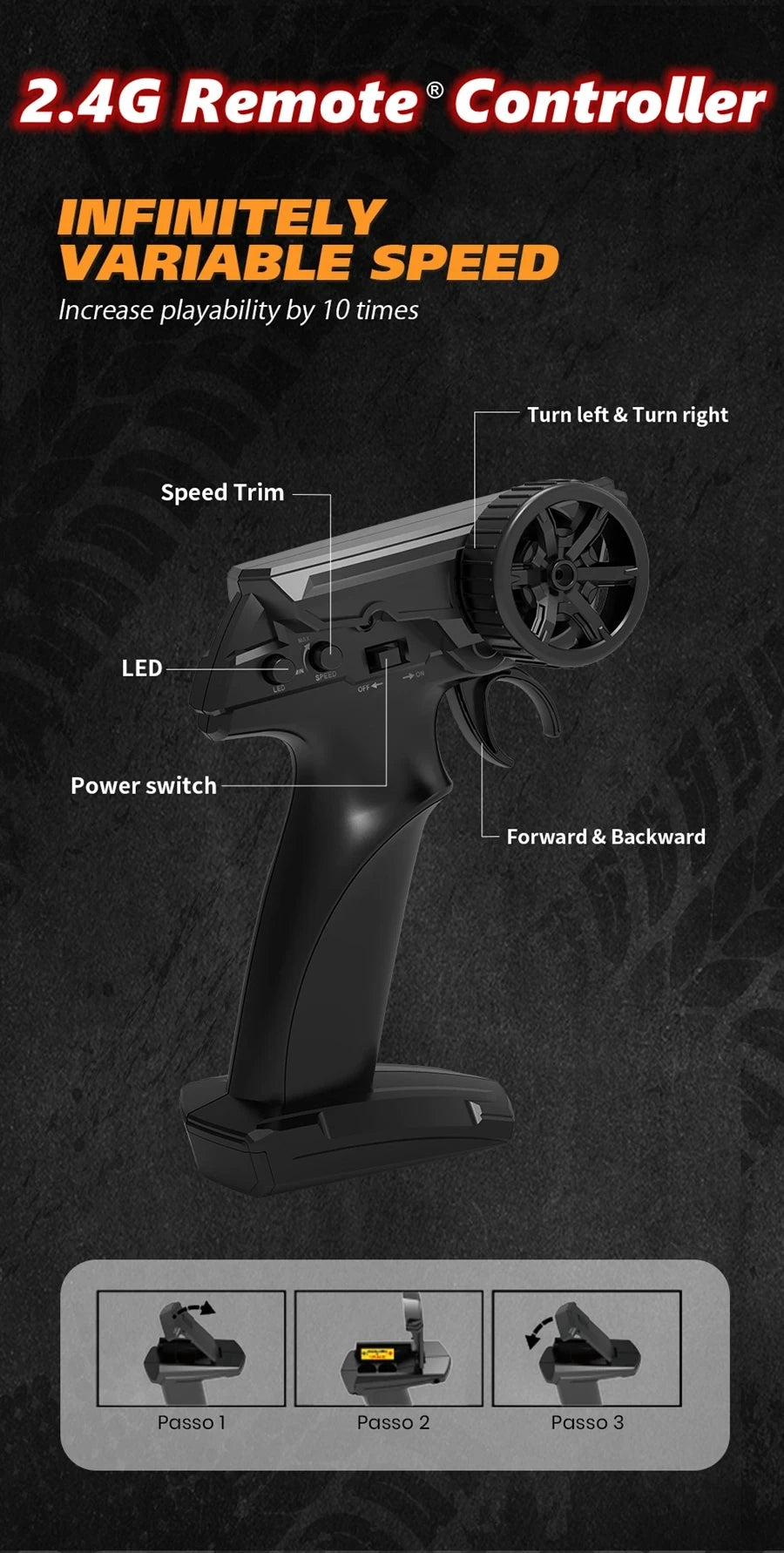 • Télécommande : Radio 2.4G avec contrôle proportionnel pour accélérer, ralentir et diriger avec précision
