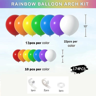 Apportez une explosion de couleurs à vos événements avec notre Ensemble de Ballons Arc-en-Ciel Latex. Parfait pour des anniversaires, mariages, baby showers ou toute autre célébration spéciale, cet ensemble de 174 pièces ajoutera une touche vibrante et joyeuse à vos décorations. Avec des couleurs éclatantes et une grande variété de tailles, cet ensemble transforme n'importe quel espace en une scène festive et inoubliable.