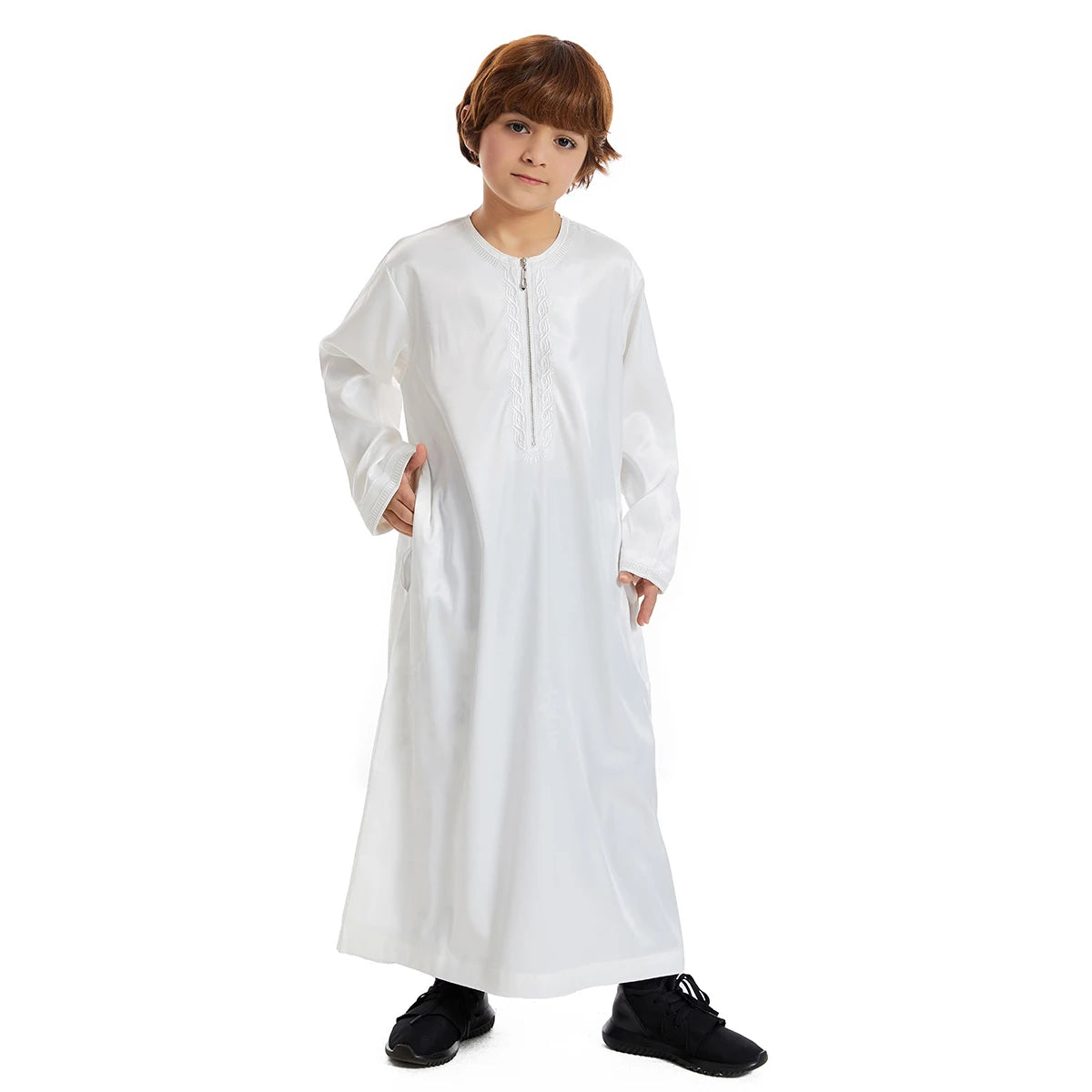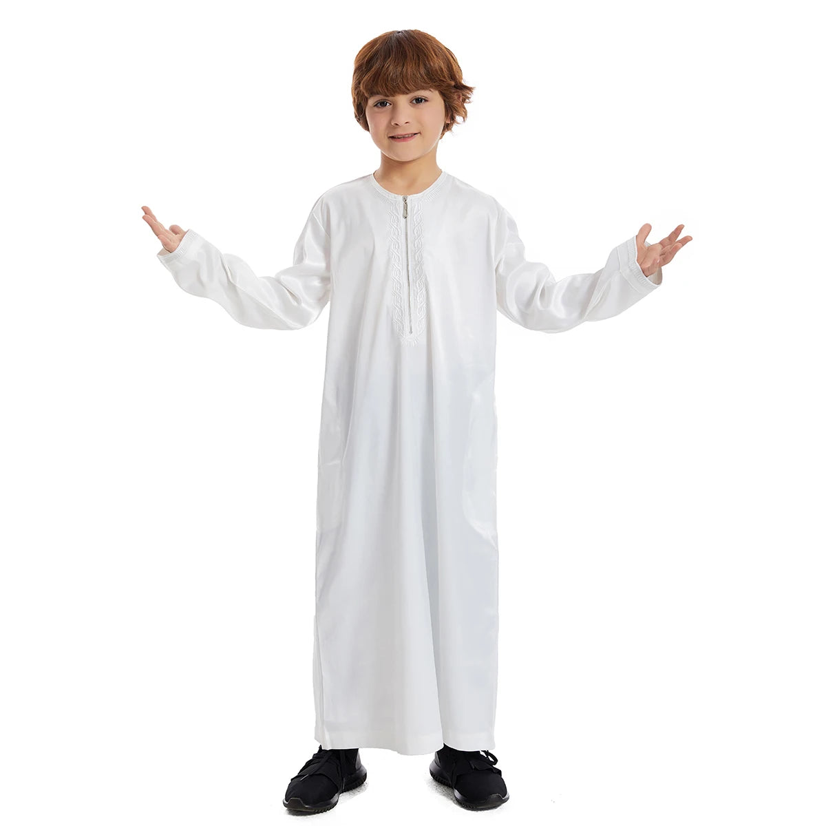 Ce vêtement, issu d’un savoir-faire minutieux, témoigne d’un engagement envers la qualité et l’excellence. Conçu en Chine (Henan) et réalisé avec une attention particulière aux détails, chaque robe incarne l’esprit du raffinement islamique, tout en étant parfaitement adaptée aux besoins des enfants actifs.