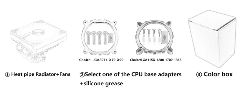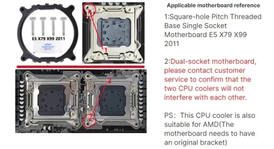 • Le refroidisseur est conçu pour s’adapter aux cartes mères avec bases filetées carrées, notamment sur les plateformes LGA 2011, 2066, 2099, E5, X79 & X99