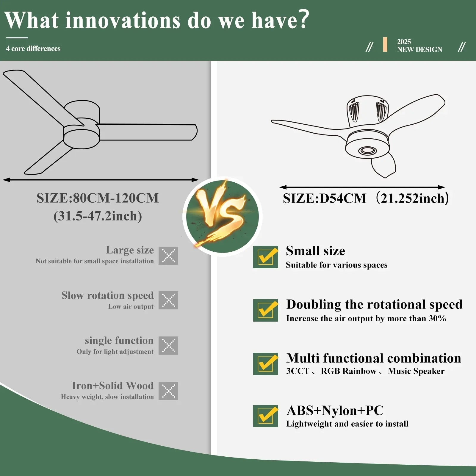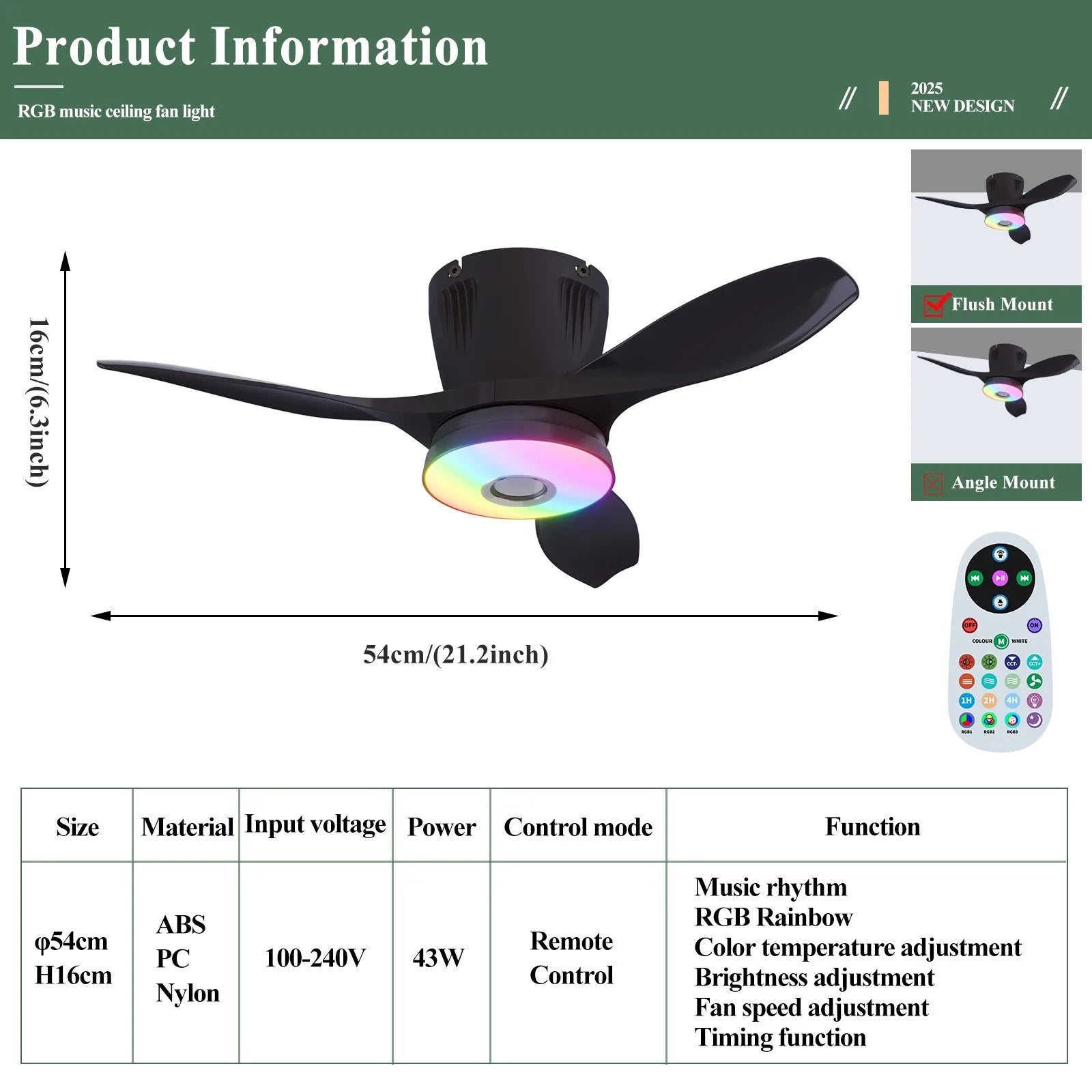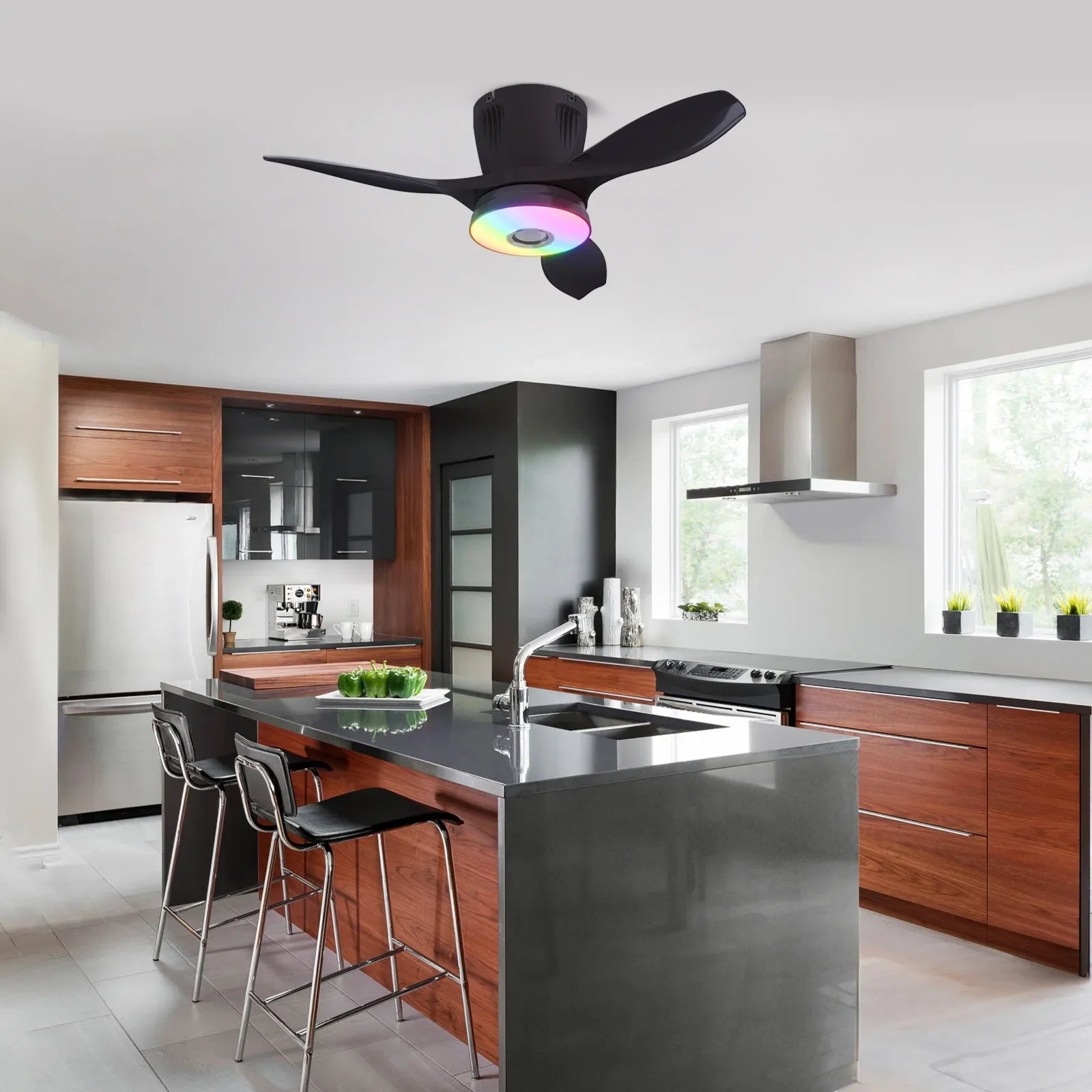 Découvrez le ventilateur de plafond LumenVista, une alliance parfaite entre design moderne et technologies innovantes. Conçu pour transformer votre intérieur, il offre un éclairage LED RGB dynamique synchronisé avec la musique et une ventilation performante pour créer une ambiance unique et chaleureuse dans votre salon ou votre chambre.