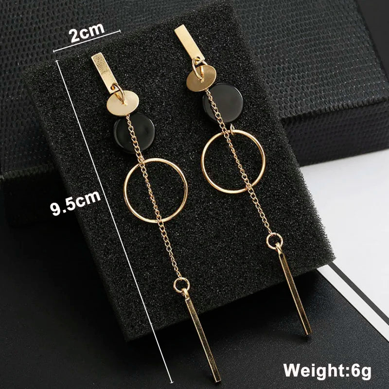Plongez dans l’univers raffiné de ces boucles d’oreilles longues, conçues pour sublimer votre style en toute occasion. Ce bijou fantaisie marie avec élégance design géométrique et allure tendance, apportant une touche contemporaine qui captive le regard.