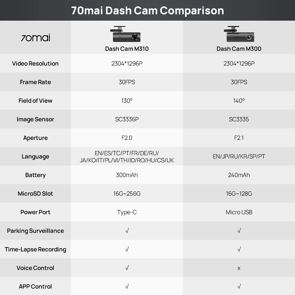 Investissez dès aujourd’hui dans la 70mai M310 et bénéficiez d’une tranquillité d’esprit totale, sur route comme en stationnement.