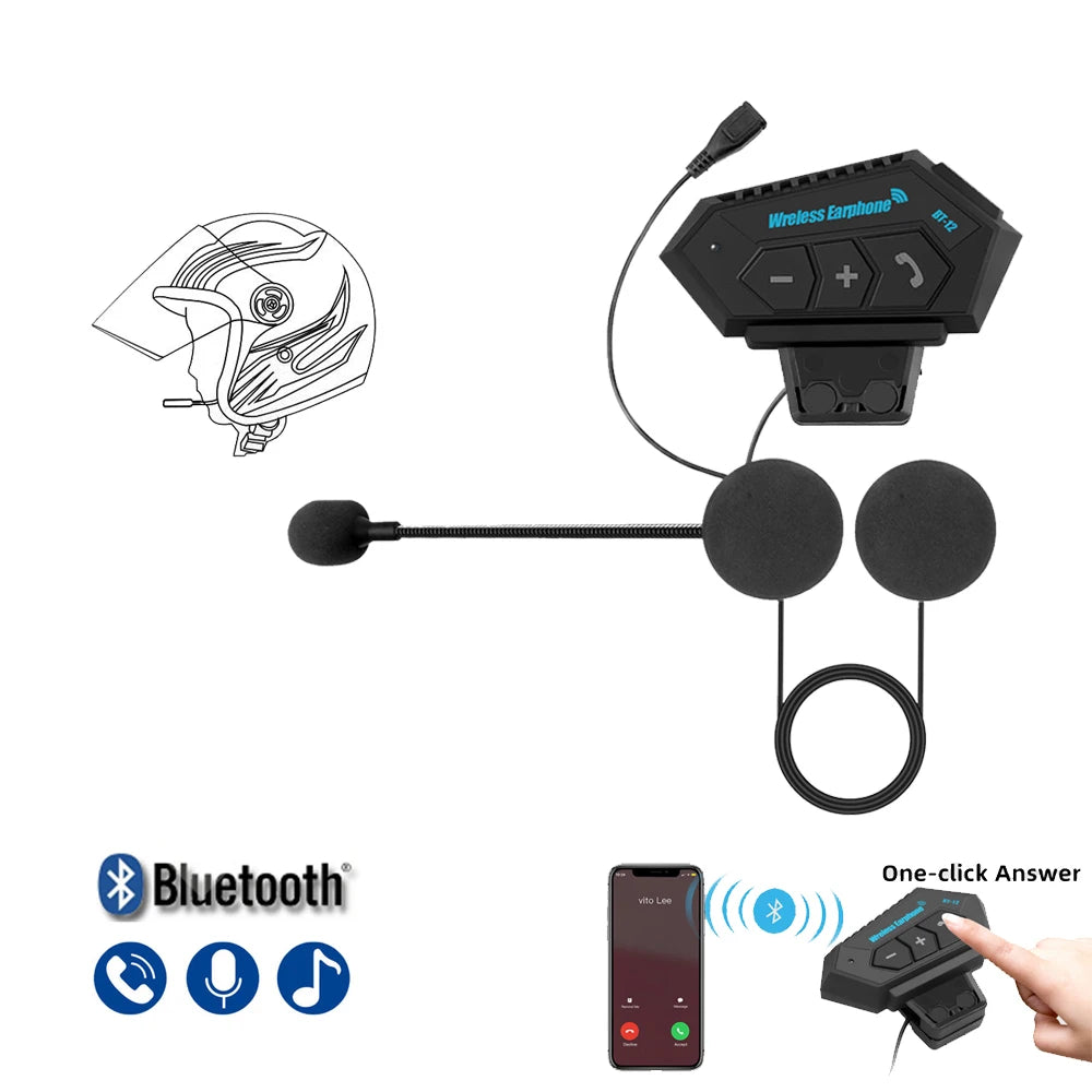 Casque Bluetooth Moto Kebidumei BT-12 - Main Libre Sans Fil, Microphone, Réponse Automatique