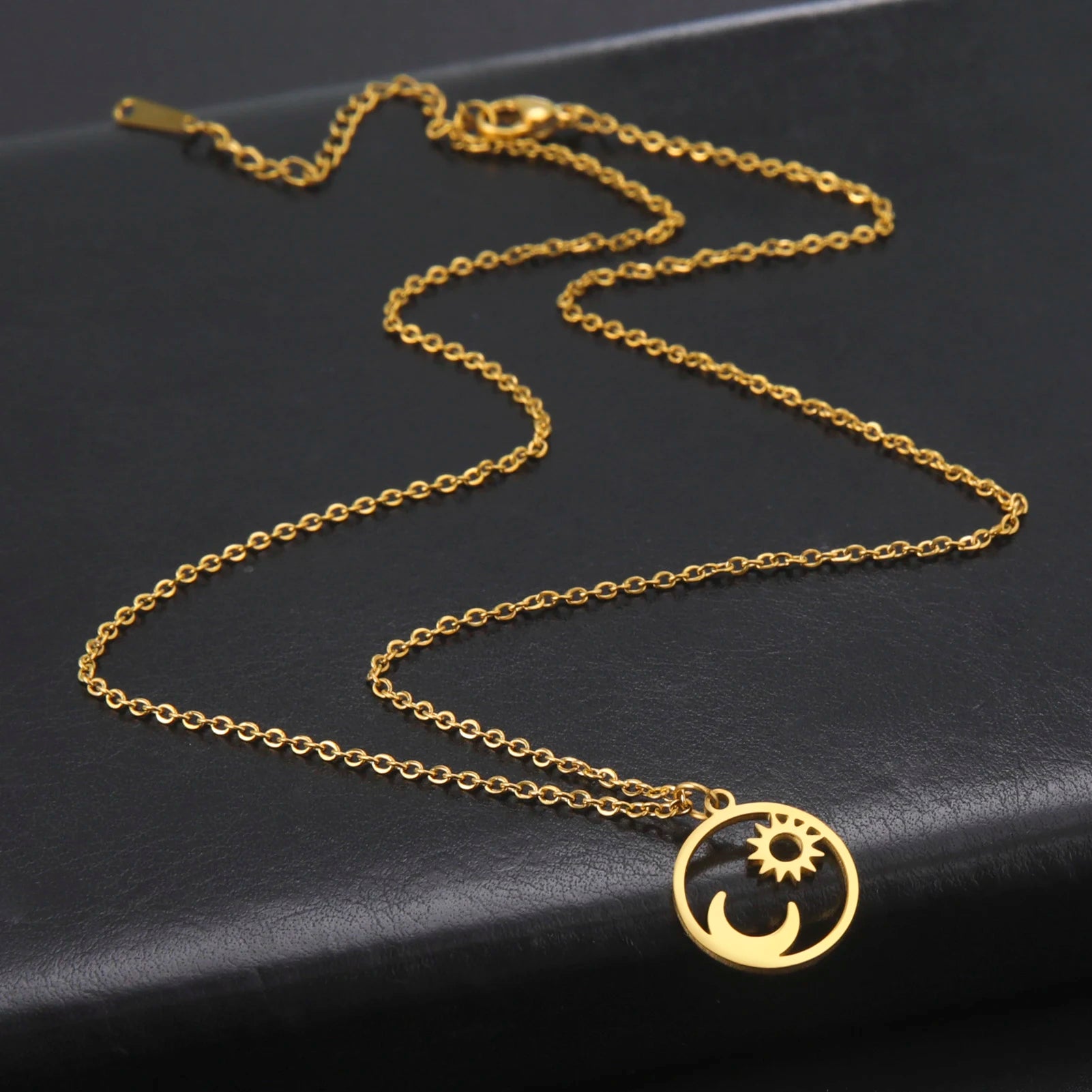 Collier Choker Lune et Soleil – Amour Éternel en Acier Inoxydable Doré