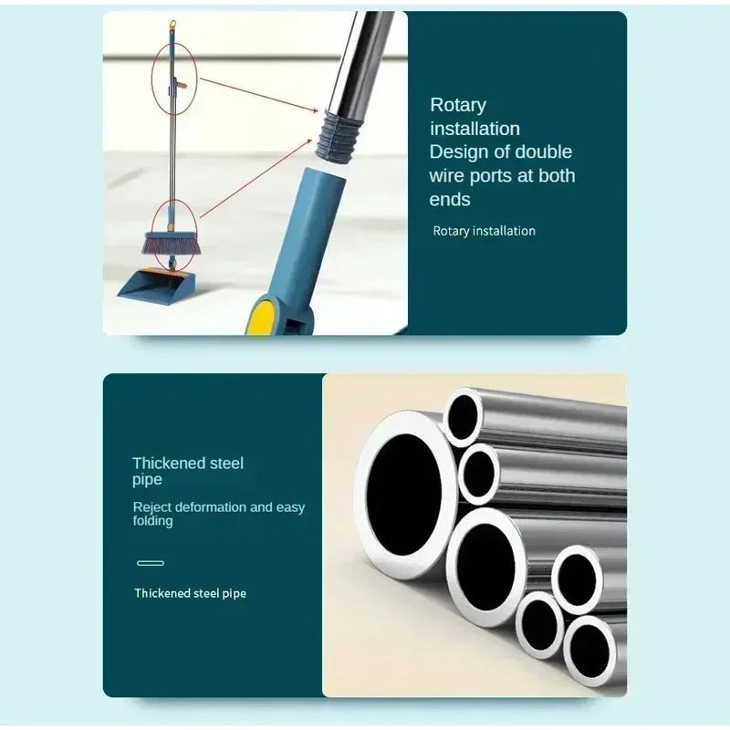 Découvrez cet ensemble innovant alliant balai et pelle à poussière, idéal pour un nettoyage domestique rapide et impeccable. Conçu pour répondre aux exigences des intérieurs modernes, il facilite l’élimination des saletés et vous assure un sol net en un seul geste.