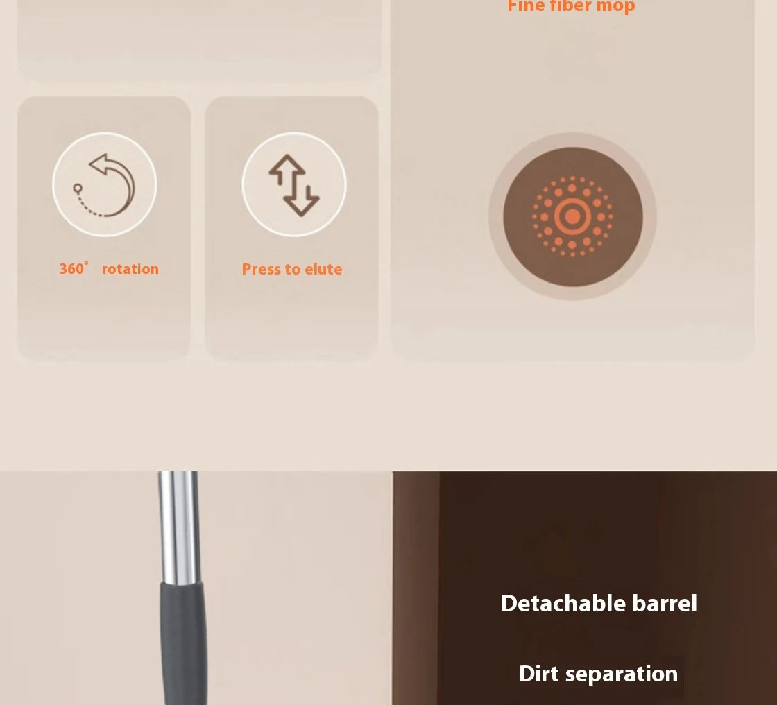 L'assemblage de ce système se fait en quelques étapes simples. Il vous suffit de séparer les deux barils du seau, de remplir chacun selon leur usage (eau propre et eau sale), d'ajuster la longueur de la poignée selon votre confort, puis d'installer la tête de vadrouille qui pivote à 360°. Sa conception intuitive permet un usage immédiat sans nécessiter d’outils supplémentaires.