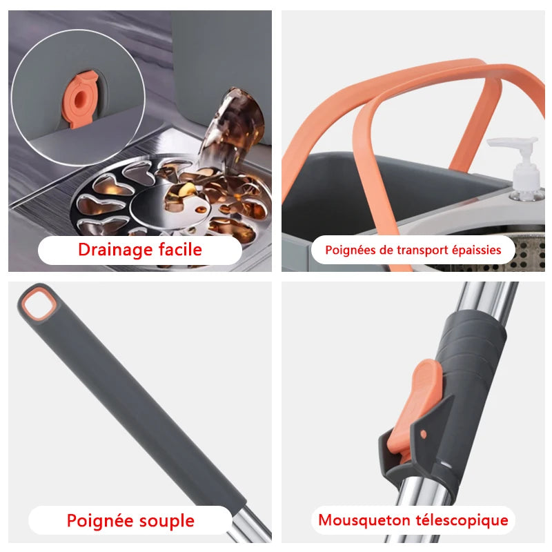 Découvrez l'ensemble de vadrouille double rotative, la solution innovante qui transforme votre corvée de ménage en une expérience simple et efficace. Conçu pour répondre aux exigences des foyers modernes, cet ensemble allie robustesse, ergonomie et respect de l’environnement, pour un nettoyage impeccable sur tout type de sol.