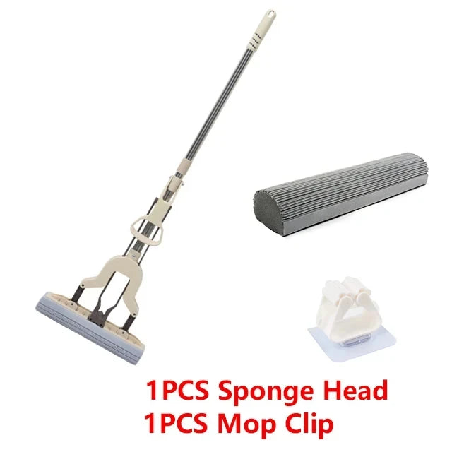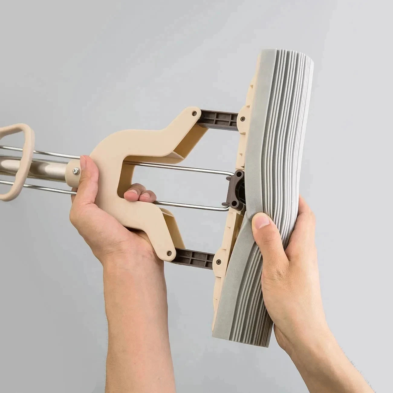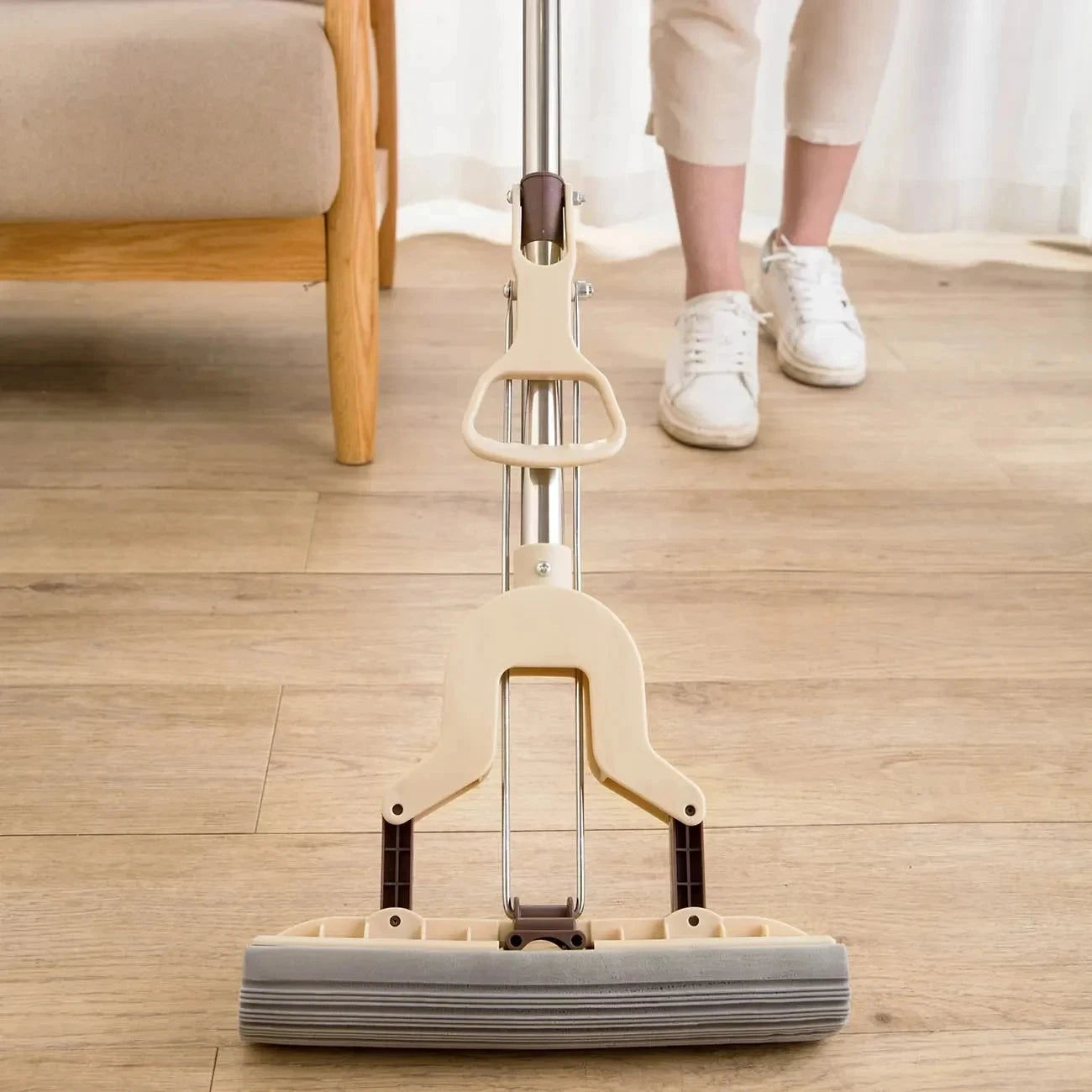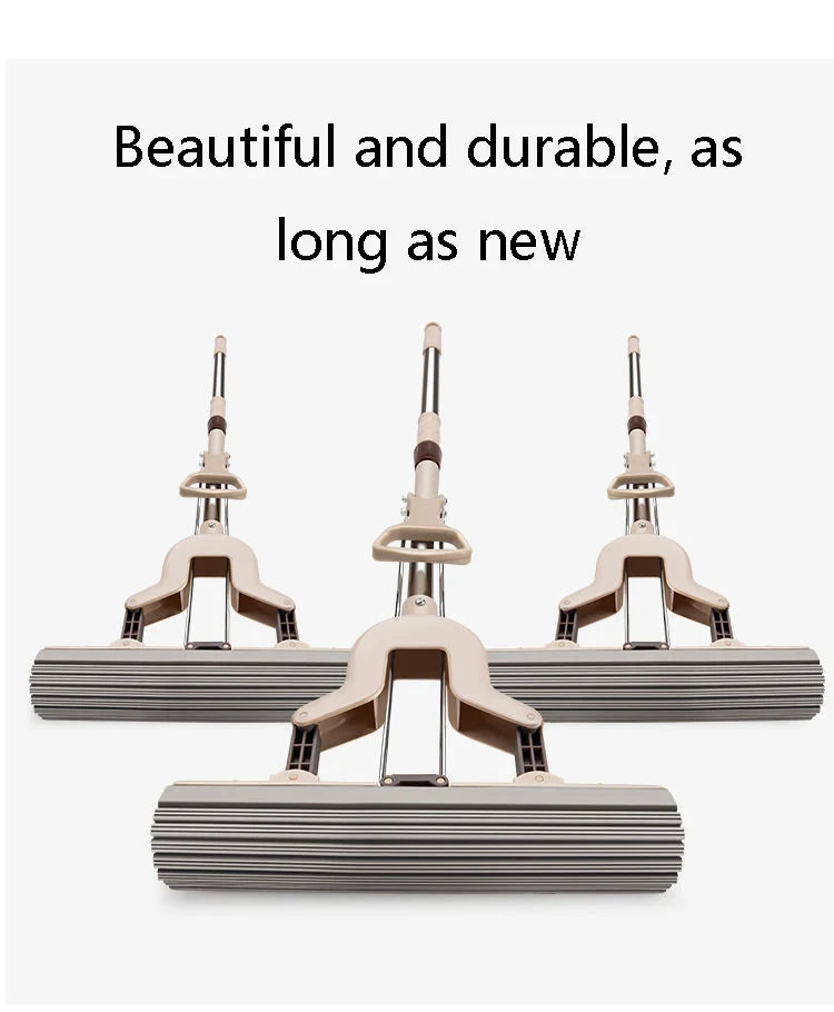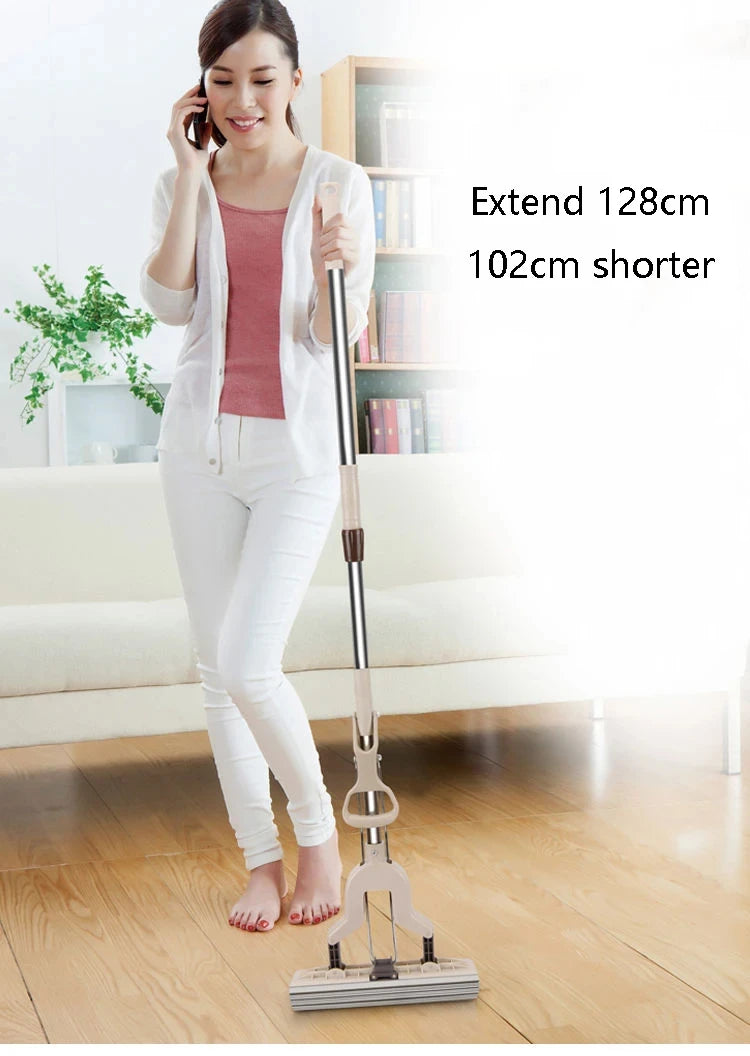 Il suffit d’ajuster la longueur de la tige pour adapter la vadrouille à votre taille, puis de fixer la tête en éponge pour commencer à nettoyer. Grâce à la plaque pivotante, un simple geste vous permet de diriger le mouvement et de nettoyer efficacement sols, meubles et coins.