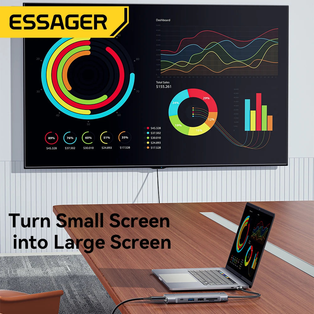 Hub USB Essager 8 en 1 avec Stockage, Dock USB-C vers HDMI