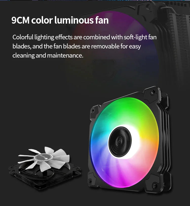 • Ventilateur lumineux à 9 cm avec effets d’éclairage RVB pour une personnalisation esthétique