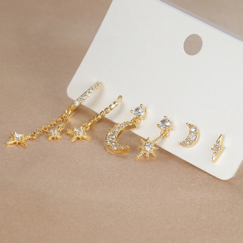 Ensemble de Boucles d'Oreilles Créoles Lune pour Femme en Acier Inoxydable avec Zircone Cubique