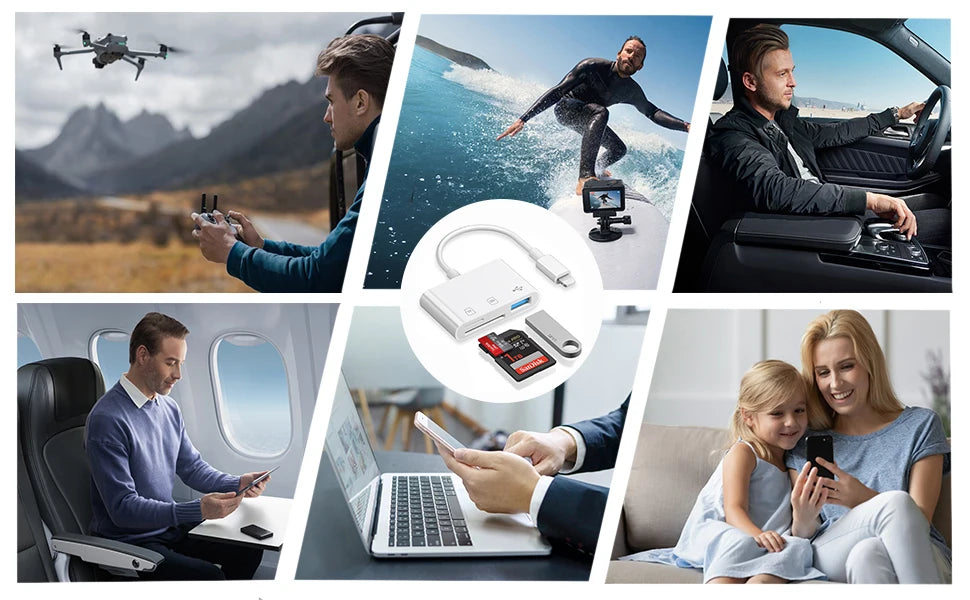 Découvrez un concentré d’innovation et de praticité spécialement conçu pour les professionnels et passionnés de technologie. Ce lecteur de carte SD 5 en 1 intègre de multiples fonctionnalités pour répondre à vos besoins quotidiens de transfert de données et de chargement, tout en garantissant une compatibilité étendue avec vos appareils.