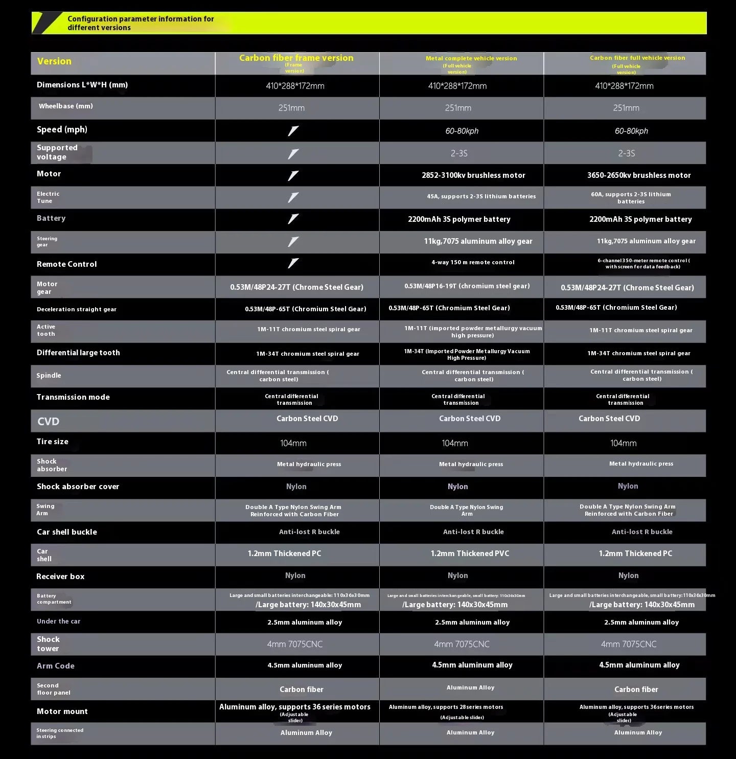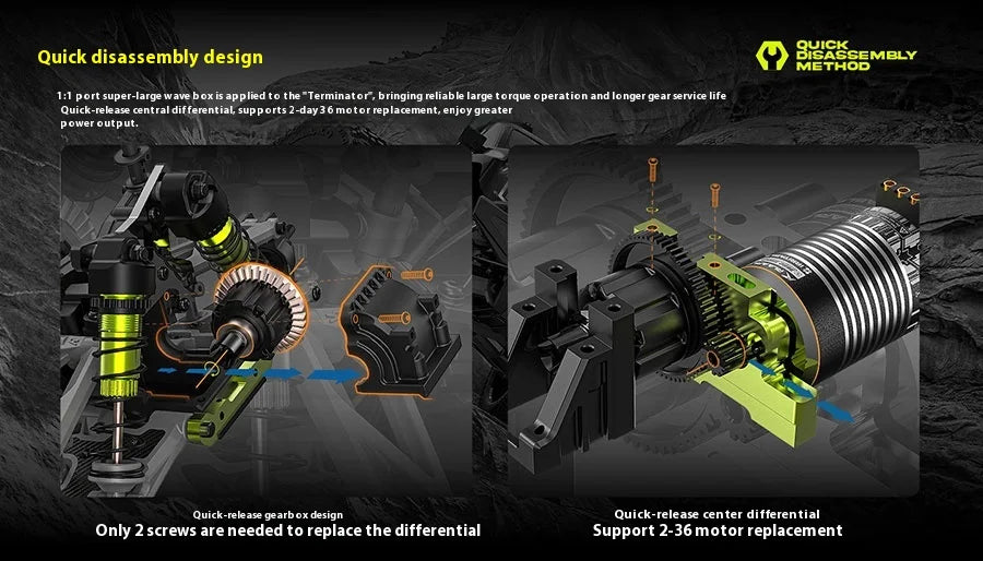 • Conception : Véhicule tout-terrain 4WD sans brosse, idéal pour des performances hors route.