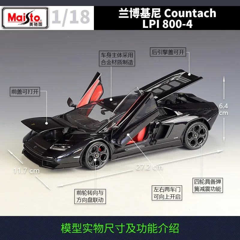Découvrez la version miniature de la légendaire Lamborghini Countach LPI 800-4 par Maisto, une pièce de collection d’exception conçue avec précision pour séduire les amateurs de voitures de sport. Ce modèle réduit, réalisé en métal die-cast avec des éléments plastiques finement travaillés, est fidèle à l’original tant par ses détails que par ses fonctionnalités interactives.