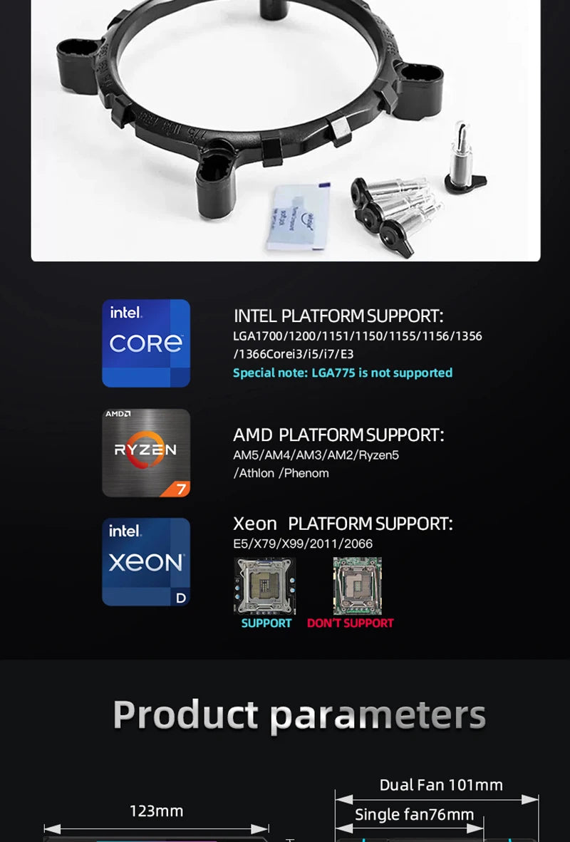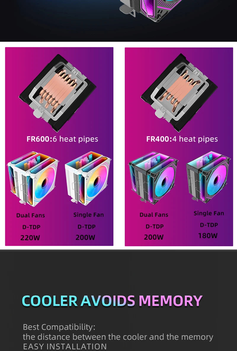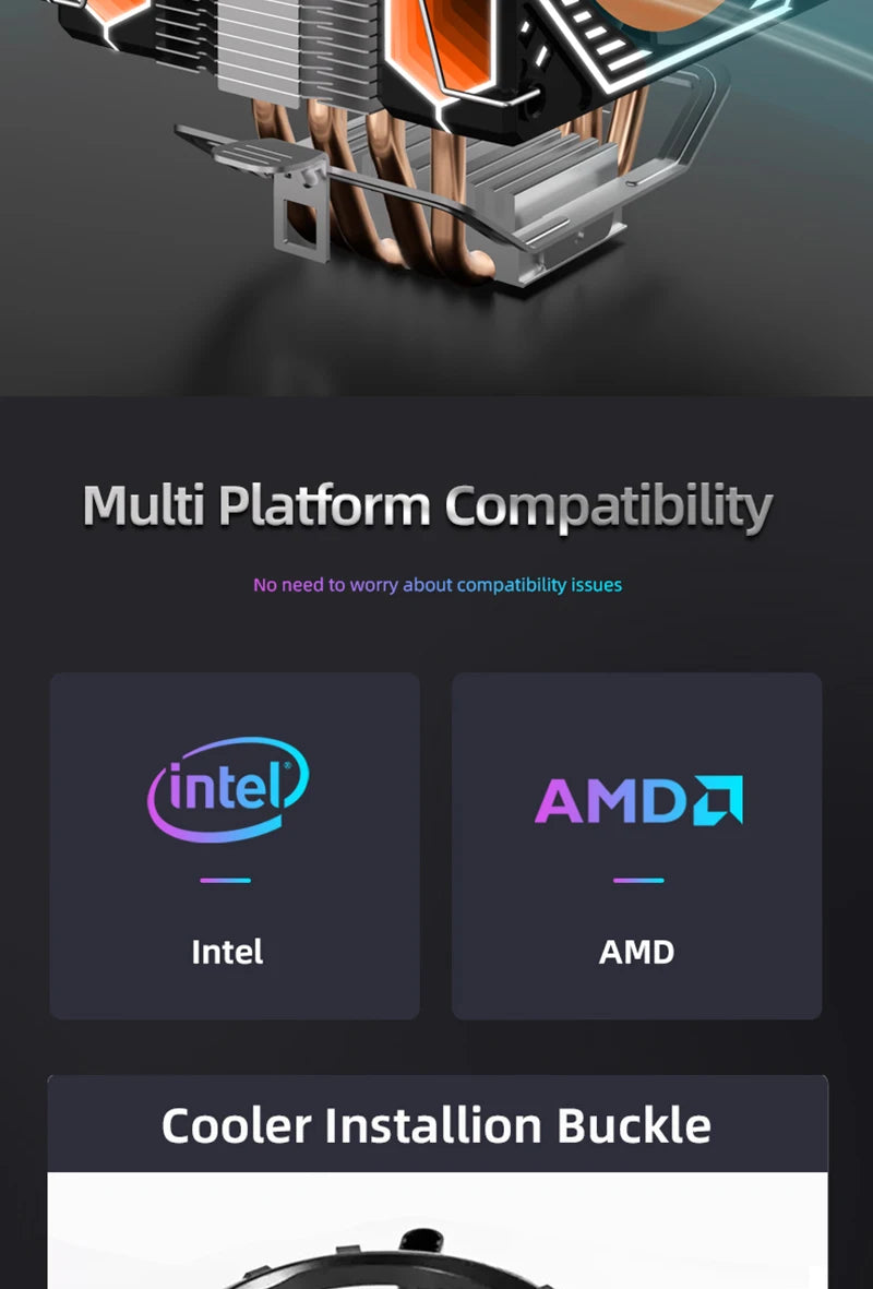• Compatibilité étendue : LGA 1150, 1151, 1155, 1156, 1170, 1200, 1356, 1366, 1700, 2011, 2011-3, AM2, AM2+, AM3, AM3+, AM4, AM5, FM1, FM2, FM2+