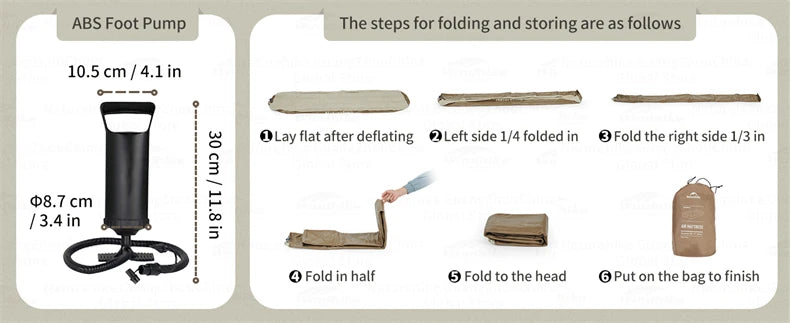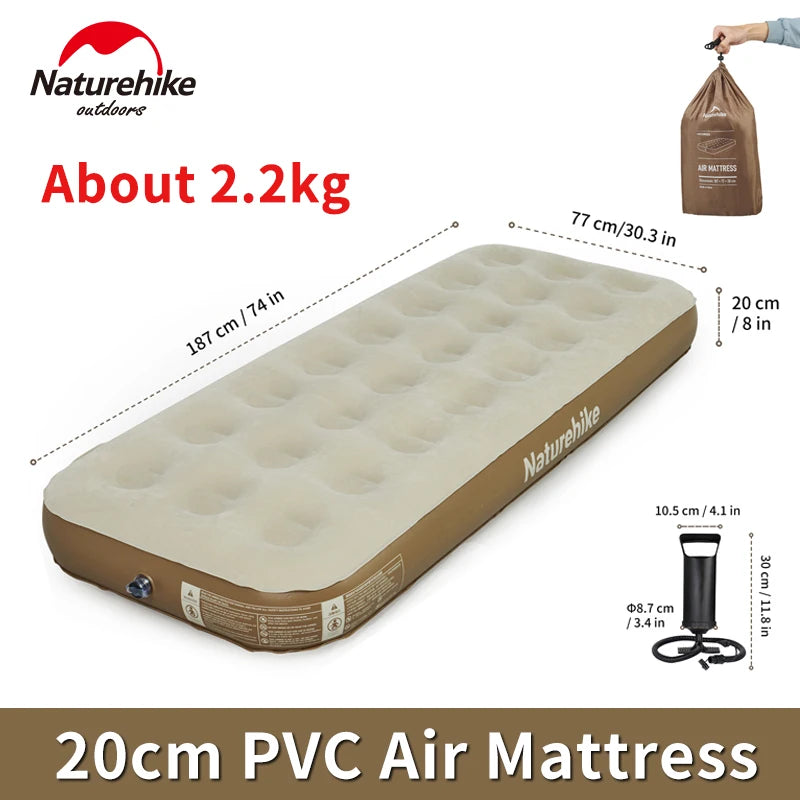Fabriqué par Naturehike en Chine (Origine CN), ce matelas est soumis à des contrôles de qualité stricts, répondant aux standards internationaux. Le modèle « Chenjing C20 » est spécialement pensé pour un couchage confortable en extérieur. L’accessoire essentiel, la pompe, est inclus dans l’emballage pour faciliter son usage dès l’achat.