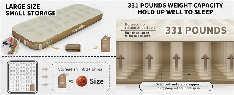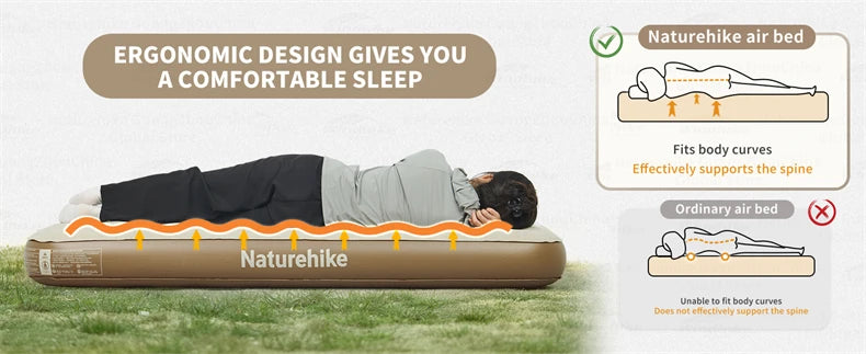 Découvrez le compagnon idéal pour vos escapades en plein air. Ce matelas gonflable Naturehike, spécialement conçu pour une personne, allie robustesse et confort, vous assurant des nuits paisibles après une journée d’aventures.
