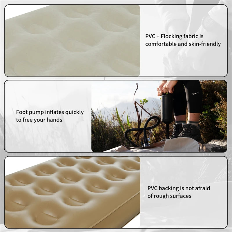 Ce matelas se distingue par sa légèreté et sa facilité d’installation, idéal pour les randonneurs et amateurs de camping. Sa conception en PVC garantit durabilité et résistance aux intempéries, tout en offrant un confort optimal grâce à sa structure conçue pour épouser la forme du corps. Sa capacité de charge élevée et ses finitions soignées font de ce matelas un choix fiable et performant pour les expéditions en pleine nature.