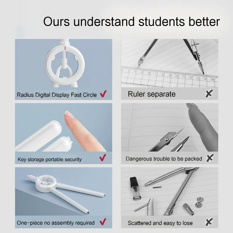 Découvrez la boussole multifonctionnelle conçue pour transformer vos travaux de géométrie et vos projets artistiques. Alliant modernité et ergonomie, cet outil innovant allège le processus de mesure grâce à un affichage numérique qui élimine la nécessité d’une règle traditionnelle.