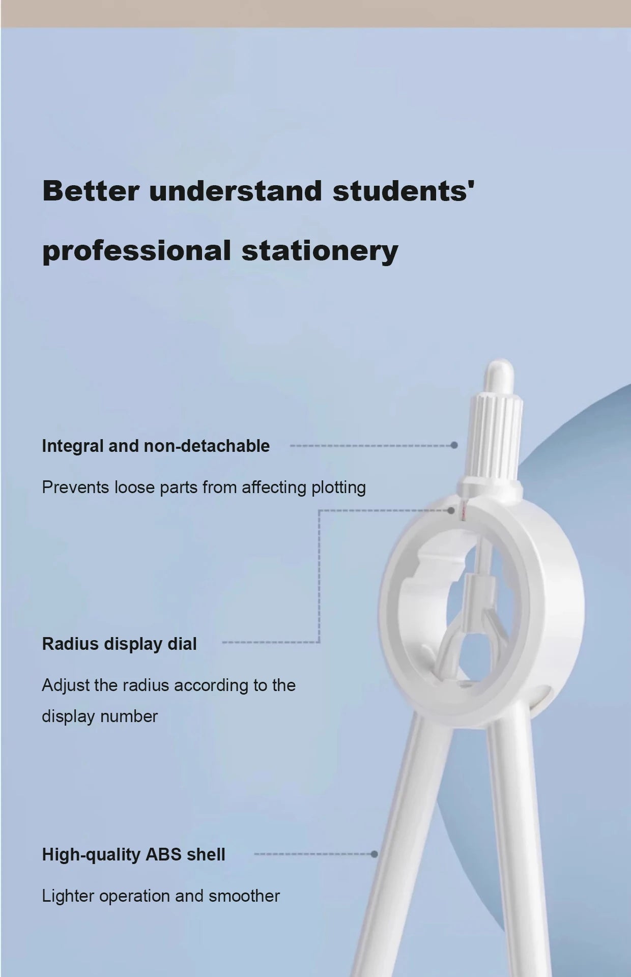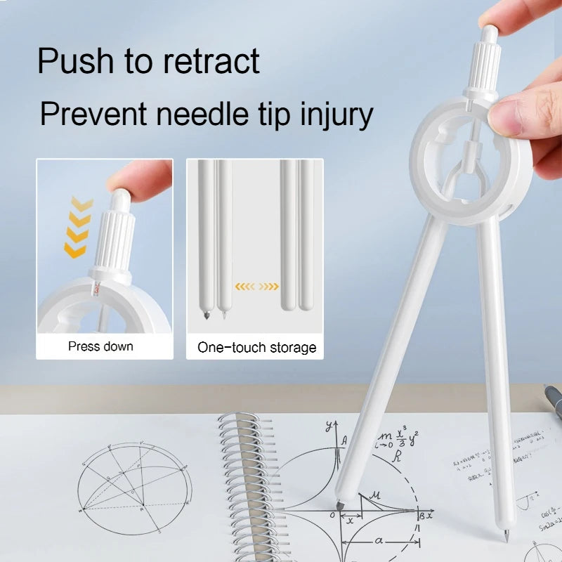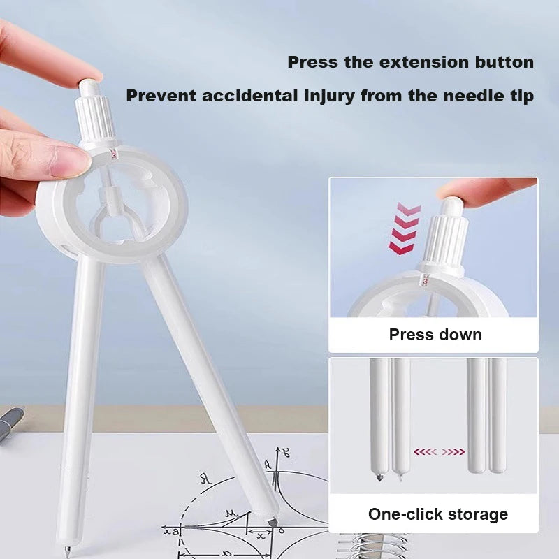 Utilisation et installation : Appuyez sur le bouton dédié pour libérer la pointe de l’aiguille et amorcer un dessin circulaire sans effort. La mise en œuvre instantanée et la précision des mesures font de cette boussole un outil indispensable pour tout étudiant ou professionnel cherchant à allier efficacité et créativité dans ses réalisations.