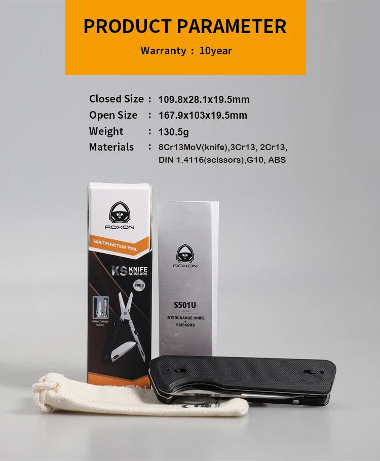 ROXON S501U - Ciseaux Pliants & Lame Couteau - Outil Multifonction Extérieur