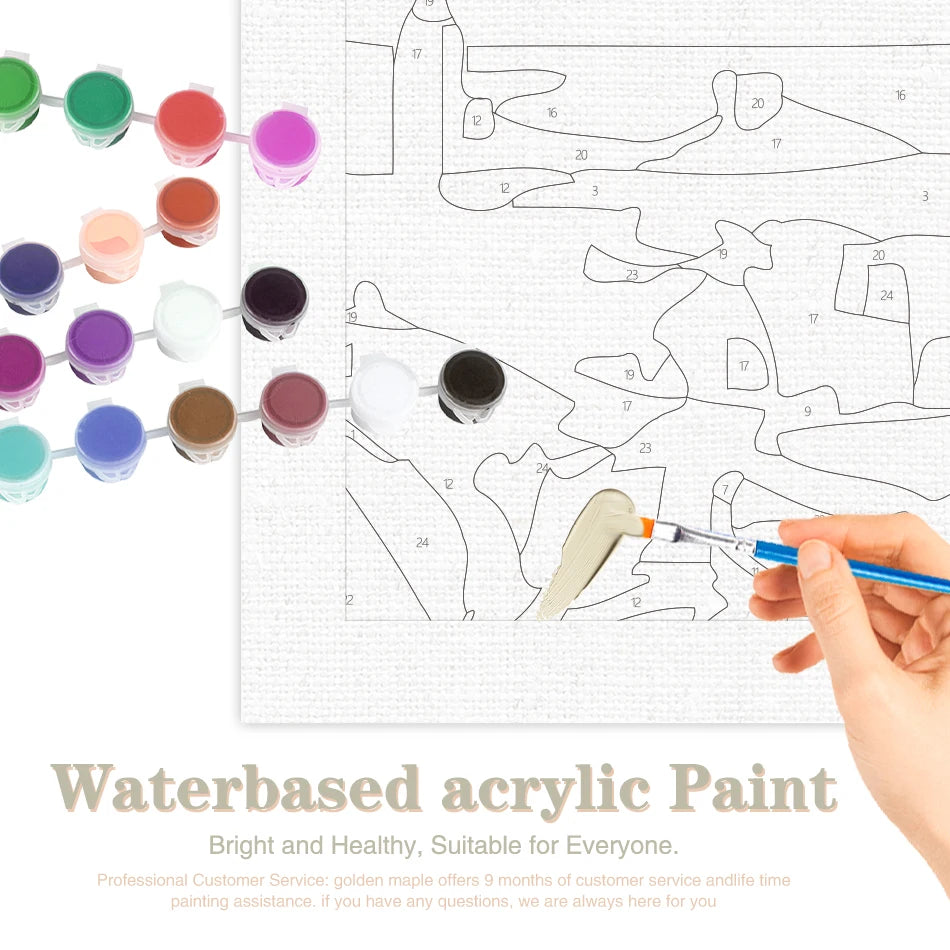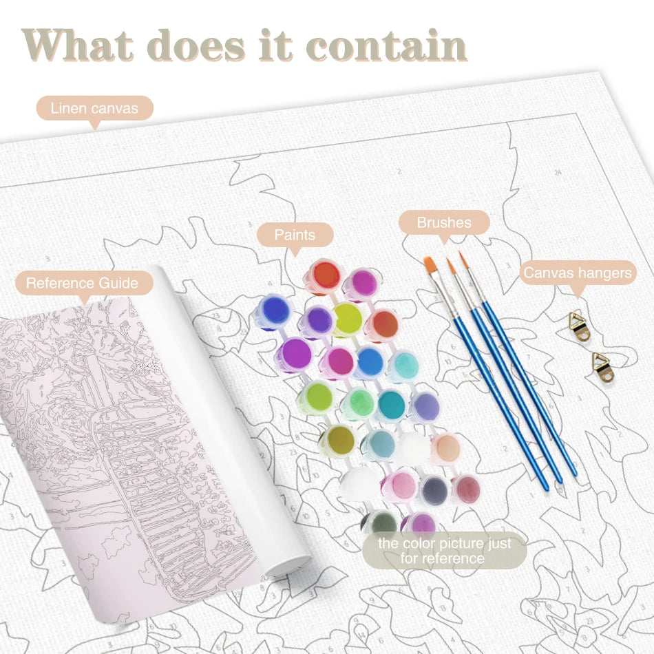Le kit est conçu pour une prise en main simple et agréable. Il vous suffit de suivre les zones numérotées sur la toile et d’appliquer les couleurs correspondantes, pour voir votre image se transformer sous vos yeux. La livraison comprend un tutoriel détaillé qui facilite chaque étape, ainsi que tous les accessoires nécessaires (toile, peinture acrylique, pinceaux et cadre pré-assemblé).