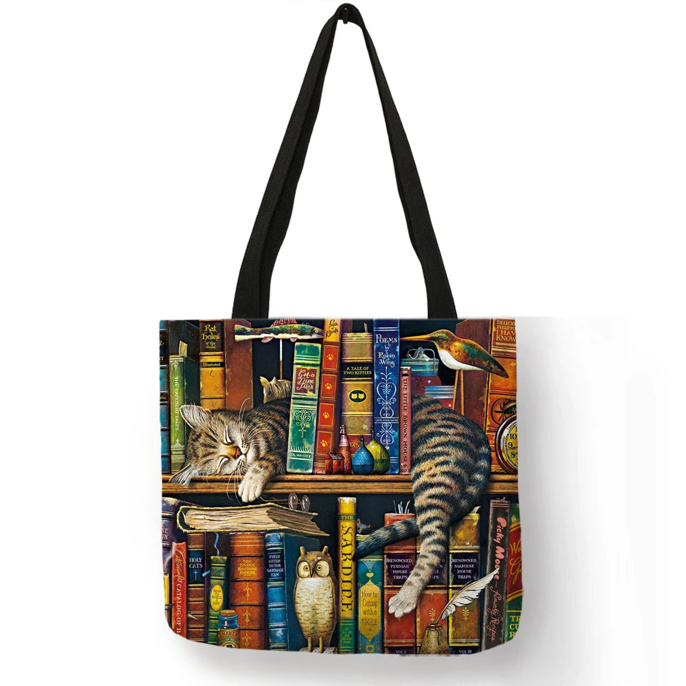 Sac Cabas Lin Femme Peinture à l'Huile Chat