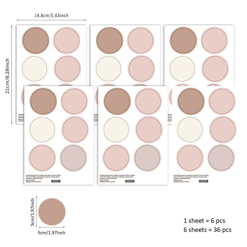 • 6 feuilles de stickers (36 pièces rondes au total)
