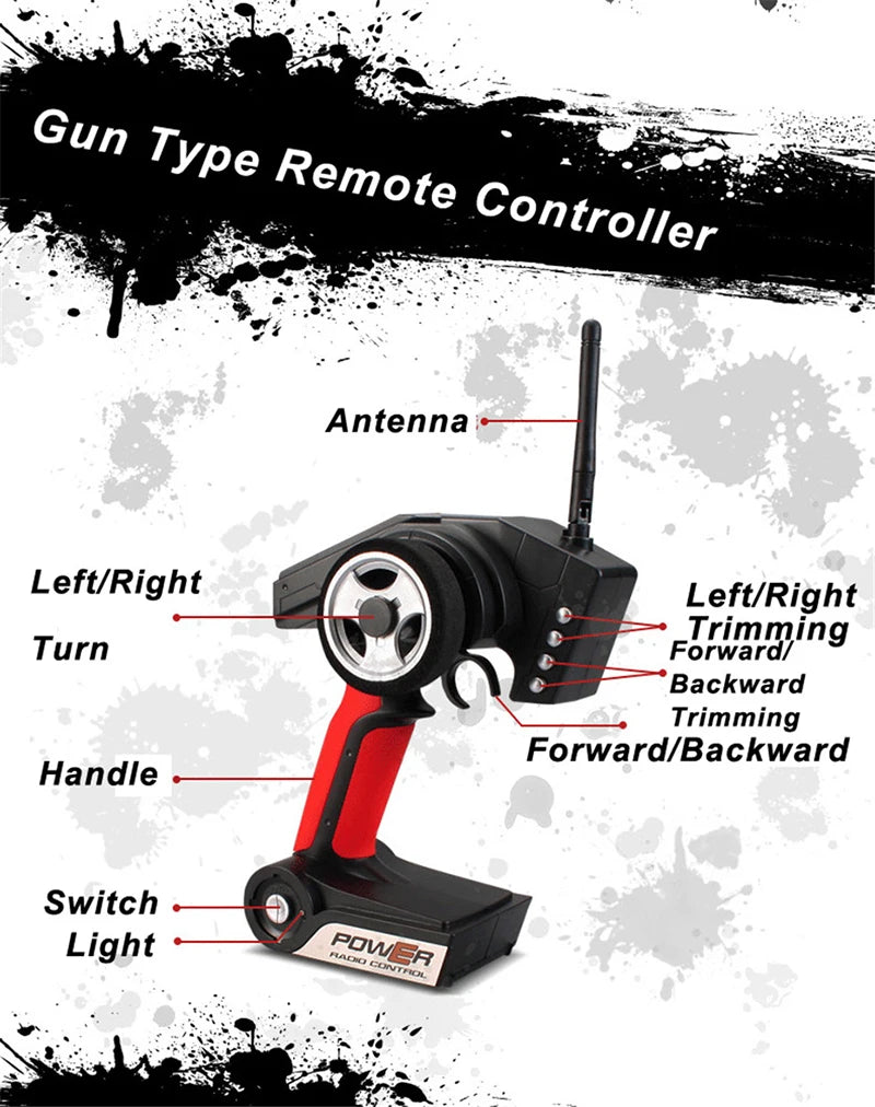 • Alimentation : Modèle RTR prêt-à-rouler sans batterie incluse; le forfait comprend piles, instructions d’exploitation, chargeur, télécommande et câble USB